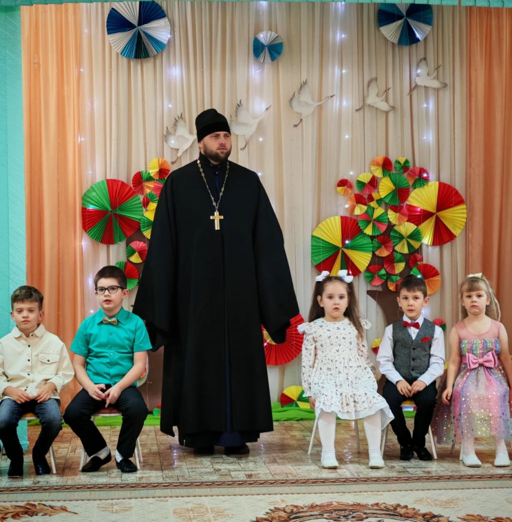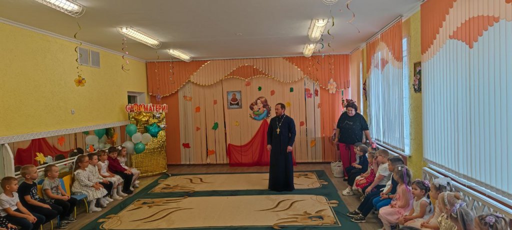 Материнской любви и заботе посвятил свое приветственное слово иерей Георгий Орловский, настоятель прихода храма святителя Николая Чудотворца в г.п.Корма, в детском саду №6. На торжественном мероприятии он рассказал воспитанникам и их родителям о значении праздника Покрова Пресвятой Богородицы, о заступничестве и покровительстве Матери Божией по молитве людей.