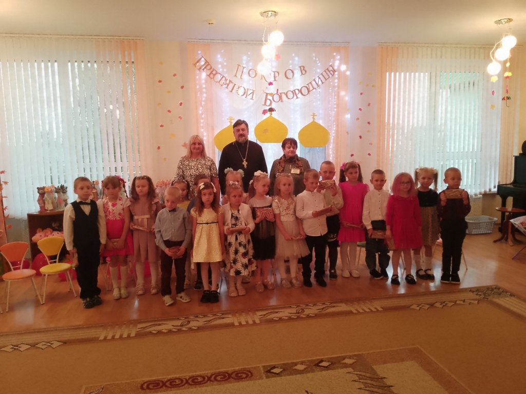 Священник напомнил о духовном значении Покрова Пресвятой Богородицы, поздравил всех воспитанников и их родителей с светлым праздником, пожелал всем здоровья, мира и благословения Божией Матери. Маленьким артистам вручил сладкие подарки.