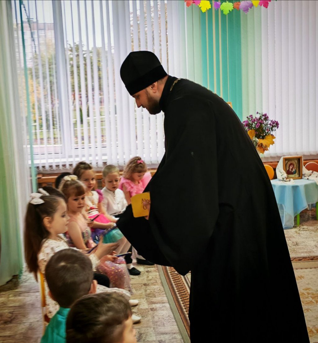 Почётным гостем на утреннике в честь Покрова Пресвятой Богородицы в ГУО «Тихиничский дошкольный центр развития ребёнка» стал настоятель прихода храма святого Архангела Михаила в аг.Тихиничи протоиерей Николай Степанов.