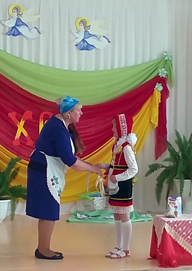Совместная работа музыкального руководителя Волчковой Аллы Викторовны, педагогов Ковырзиной Екатерины Александровны и Скорых Регины Ермековны подарила много радостных минут и взрослым, и детям. Протоиерей Владимир Янчесов, настоятель прихода храма Святого Духа д. Дворец, поздравил всех с Праздником праздников, поблагодарил ребят, и педагогов за замечательное представление и вручил всем пасхальные сувениры.