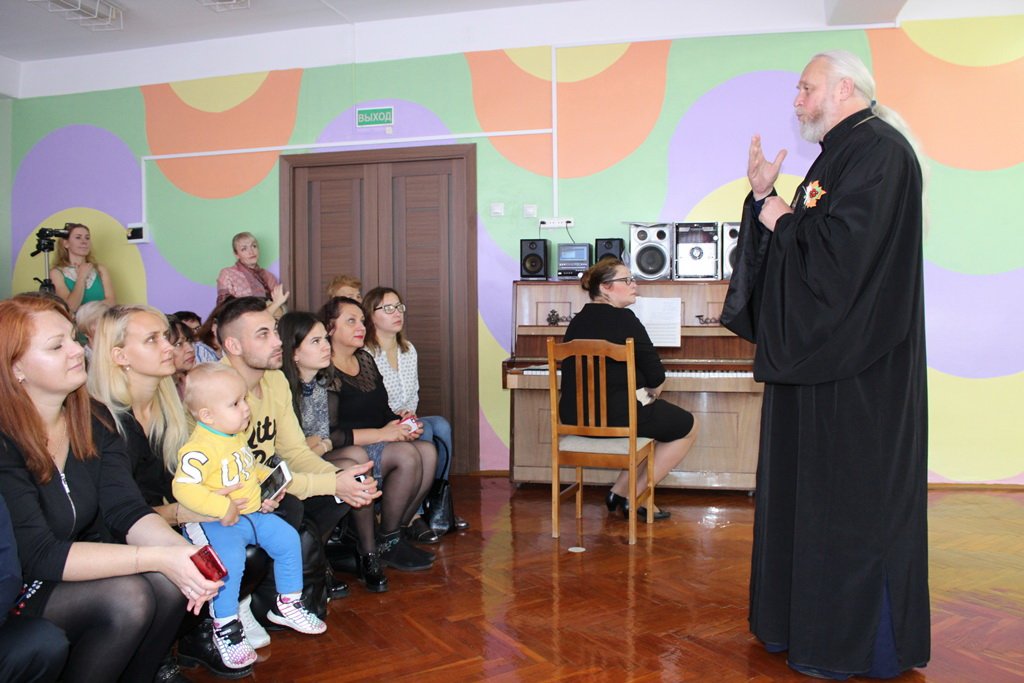 15 октября дружно прославляли Царицу Небесную и чествовали своих любящих и заботливых мам воспитанники средней группы яслей-сада №12 г.Рогачёва. Поздравляя с праздниками Покрова Пресвятой Богородицы и Днём матери, юные артисты искренне дарили мамам трогательные стихи и песни. На праздник к ребятам заглянула щедрая хозяюшка-осень, порадовав их играми и закружив, как золотую листву, хороводами. А театрализованная постановка "Шарф-покров" в исполнении ребят старшей группы напомнила о том, как важно в трудные времена помогать друг другу и согревать душевным теплом. Совместная работа детей и педагогов: музыкального руководителя Курочкиной Ирины Леонидовны, воспитателей Шиловой Анастасии Владимировны и Кутай Татьяны Александровны -- подарила много радостных минут и взрослым, и детям. Вместе со всеми радовался празднику и протоиерей Алексей Смотрицкий - настоятель прихода храма святого благоверного князя Александра Невского в г.Рогачёве. Священник поблагодарил за замечательное представление и поздравил всех с праздниками Покрова Пресвятой Богородицы и Днём матери, объяснив ребятам, что Царица Небесная - Матерь Божия заботится обо всех людях и, как обещала апостолам Христовым, всегда рядом с нами. Мы можем обращаться к Ней, как к самой любящей маме, за советом и помощью и, конечно, с любовью и благодарностью. И дети с радостью благодарили Пресвятую Богородицу и протоиерея Алексея Смотрицкого за сладкие подарки к празднику.