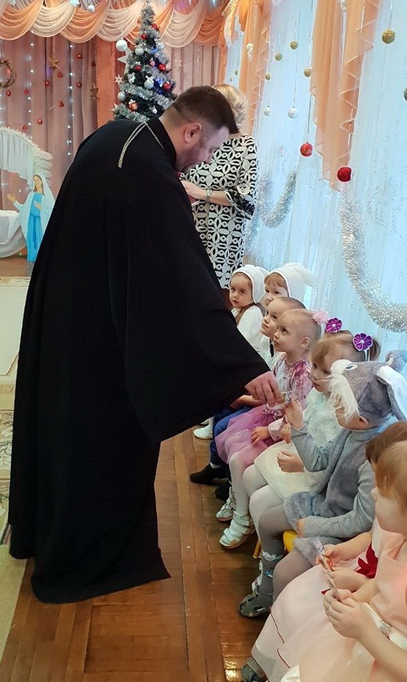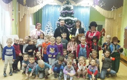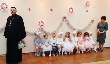 подготовили старшие группы, в которых дети воспитываются на православных традициях белорусского народа. Радостную весть о рождении Богомладенца они передавали в песнях и стихотворениях. Рождество - время чудес, которые совершает Господь по молитвам любящих сердец. Ребята поведали об этом в трогательной инсценировке о девочке Настеньке, которая в этот радостный праздник грустила одна, потому что крёстная заболела. Друзья - лесные зверята - решили подарить девочке хорошее настроение, ведь она всегда заботилась о них. По их молитвам Господь исцелил крёстную, и все дружно радовались Рождению Спасителя. Благодаря совместной работе воспитателей Журавлёвой Татьяны Леонидовны, Баранчук Марины Ивановны и музыкального руководителя Ивантатовой Елены Викторовны, праздник получился очень светлым и добрым. Это отметил в поздравлении протоиерей Александр Атрощенко. Священник ещё раз напомнил ребятам и взрослым евангельскую историю Рождества Господа нашего Иисуса Христа и пожелал, чтобы в семьях всегда царила любовь и атмосфера добра и уважения друг к другу. На память о празднике отец Александр подарил ребятам маленькие рождественские сувениры.