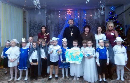 В санаторном яслях-саду №4 святым вечером 10 января вспоминали "Рождества волшебные мгновенья..." В театрализованном представлении воспитанники старшей группы объяснили всем, что Бог пришёл на Землю беззащитным Младенцем спасти нас от зла. Благодаря ребятам и их педагогам зрители оказались в настоящей рождественской сказке, в которой совершаются чудеса: танцуют звёзды и Ангелы спускаются с небес. Волхвы спешат за Вифлеемской звездой принести Богомладенцу свои дары. И ребята торопились подарить Господу на День Рождения свои чистые сердечки, прославляющие Его Воплощение. Протоиерей Владимир Янчесов поздравил всех с Рождеством Христовым, поблагодарил ребят и педагогов - Екатерину Александровну Ковырзину, Регину Ермековну Скорых и музыкального руководителя Волчкову Аллу Викторовну - за подаренную радость. Прежде чем вручить рождественские сувениры, священник провёл викторину, чтобы проверить, насколько хорошо знают ребята историю праздника. Самые внимательные получили дополнительные призы от отца Владимира.