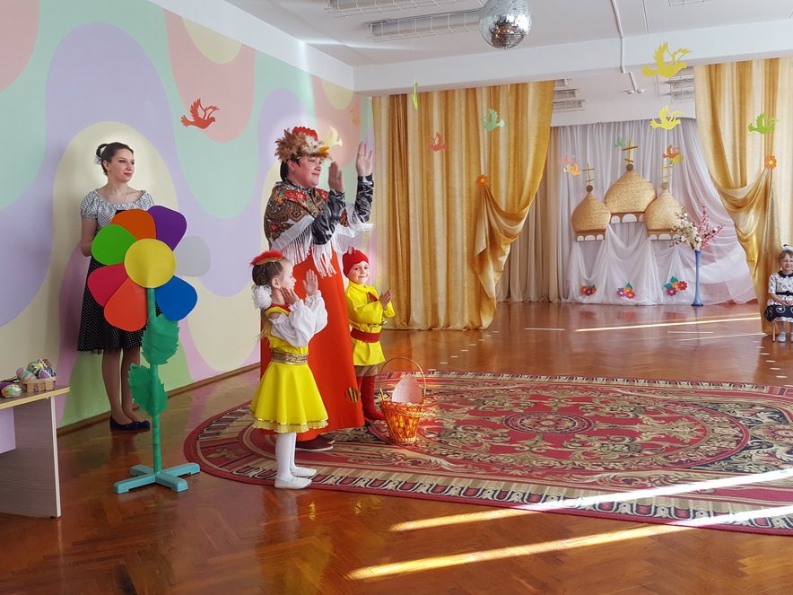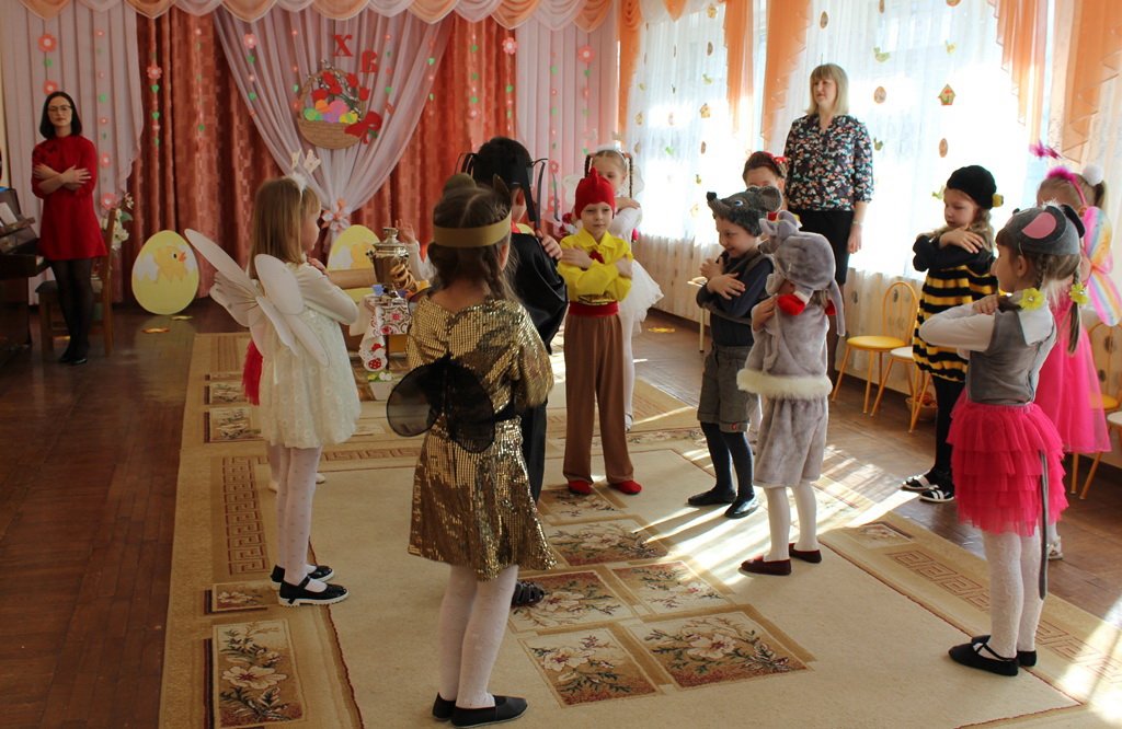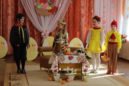Эстафету праздничных пасхальных представлений в дошкольных учреждениях продолжил 13 апреля ясли-сад №11 программой «Чудесный день, душа сияй, и сердце Бога прославляй!», которую подготовили воспитанники старшей группы. Благодаря совместному творчеству детей, воспитателей Феоктистовой Натальи Сергеевны и Андреевой Cветланы Васильевны и музыкального руководителя Заплешниковой Натальи Юрьевны зрители побывали в гостях у Мухи-Цокотухи. Гостеприимная хозяйка в светлый праздник Воскресения Христова готовилась угостить своих друзей, а шаловливые мышки разбили золотое яичко. Но в такой день, когда вся природа радуется Воскресению Спасителя, нельзя грустить, поэтому друзья очень старались утешить Муху - Цокотуху пасхальными песнями и танцами, весёлыми играми и замечательными стихотворениями. А милые цыплятки принесли ей в подарок «крашенки». Все вместе друзья прославляли Христа и радовались весне. Общую радость разделил с ребятами и взрослыми иерей Георгий Орловский, настоятель прихода храма Покрова Пресвятой Богородицы аг. Довск. Он поздравил всех с Воскресением Христовым, объяснил, какое важное значение имеет для нас это событие, и пожелал всегда хранить в душе огонёчек веры. На память о празднике отец Георгий подарил ребятам пасхальные сувениры.