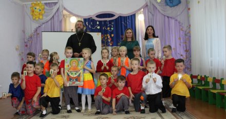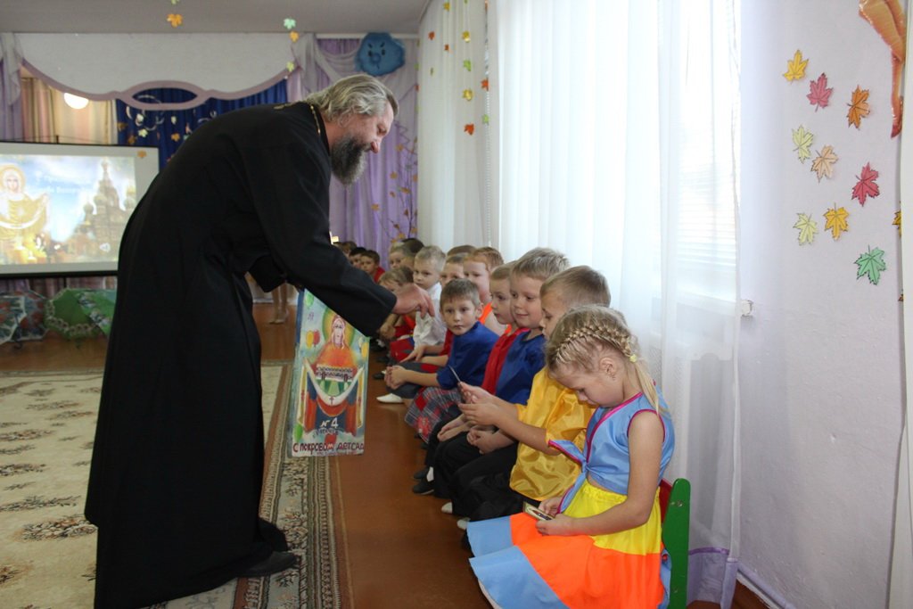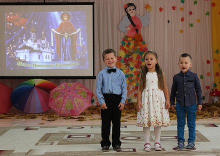 Совместная работа музыкального руководителя Волчковой Аллы Викторовны, педагогов Ковырзиной Екатерины Александровны и Скорых Регины Ермековны подарила много радостных минут и взрослым, и детям. Заканчивая праздник, протоиерей Владимир Янчесов поблагодарил за замечательное представление, поздравил всех с праздниками Покрова Пресвятой Богородицы и Днём матери. Священник подарил детскому саду свою картину, на которой Пресвятая Богородица распростёрла Свой Покров над этим домом, где когда-то воспитывался он сам и где сейчас воспитывают ребят на православных традициях белорусского народа. А детям отец Владимир подарил иконочки, чтобы ребята не забывали обращаться в молитве к Божией Матери и в радости, и в печали.