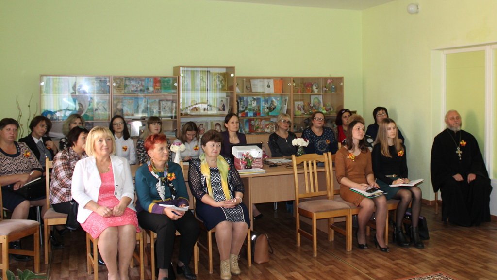 18 октября на базе ресурсного центра по духовно-нравственному воспитанию государственного учреждения образования «Ясли-сад №7 г. Рогачёва» состоялось первое занятие Школы профессионального мастерства для педагогических работников, организующих духовно-нравственное воспитание в учреждениях дошкольного образования. Занятие было посвящено организации реализации программы «Духовно-нравственное воспитание дошкольников на православных традициях белорусского народа» в учреждениях дошкольного образования, её содержанию и формам. Руководила ходом занятия Пашковская Н.А. ,методист по дошкольному воспитанию Рогачёвского отдела образования, спорта и туризма. Маголло Т.М. , заведующий учреждением образования, познакомила педагогов с правовыми основами взаимодействия учреждений образования с религиозными организациями. О специфике организации работы по программе «Духовно-нравственное воспитание дошкольников на православных традициях белорусского народа» в учреждениях дошкольного образования, методологических и методических принципах программы рассказала Бакадорова Н.В. - заместитель заведующего по основной деятельности . Воспитатель Минкова А.М. раскрыла в своём выступлении формы и методы воспитания на православных традициях белорусского народа. В работе школы профессионального мастерства принял участие настоятель Прихода храма святого благоверного князя Александра Невского протоиерей Алексей Смотрицкий. После перерыва участники семинара познакомились с выставкой декоративно-прикладного творчества и посетили открытое мероприятие, посвящённое Дню Матери и празднику Покрова Пресвятой Богородицы, в старших группах, работающих по программе «Духовно-нравственное воспитание дошкольников на православных традициях белорусского народа».