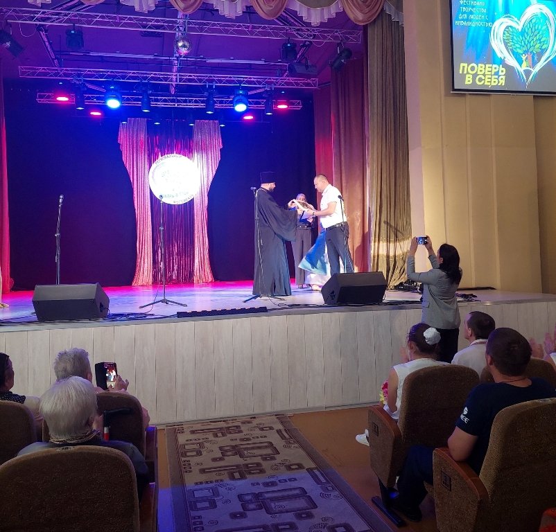Слова признательности и благодарности звучали в адрес руководителей кружковой работы, которые помогают подопечным развиваться и демонстрировать свое мастерство окружающим. Директору ГУ «Рогачевский территориальный центр социального обслуживания населения» Купрееву Константину Владимировичу от прихода храма святого благоверного князя Александра Невского в г.Рогачеве была вручена икона Ангела-хранителя.
