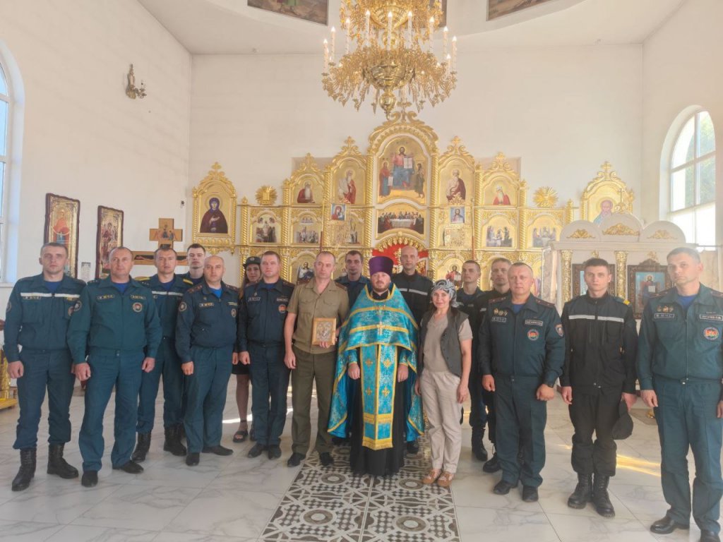 Священник поздравил кормянских спасателей с Днём празднования чудотворной иконы – покровительницы и защитницы пожарных и всех, чья профессиональная деятельность связана с огнем. Пожелал во всех чрезвычайных ситуациях иметь духовную поддержку и помощь Царицы Небесной и вручил начальнику Кормянского РОЧС подполковнику Андрею Чуешову образ Пресвятой Богородицы «Неопалимая Купина».