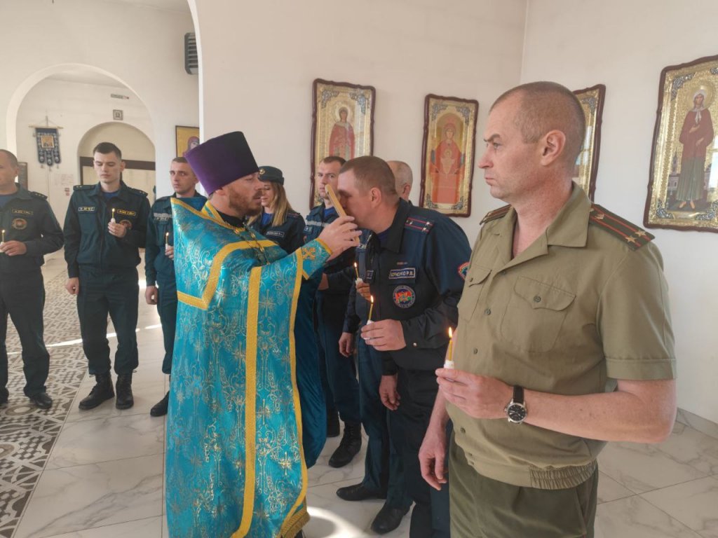 17 сентября настоятель прихода храма святителя Николая Чудотворца в г.п.Корма иерей Георгий Орловский отслужил молебен иконе Божией Матери «Неопалимая Купина». В молебне приняли участие сотрудники Кормянского РОЧС.