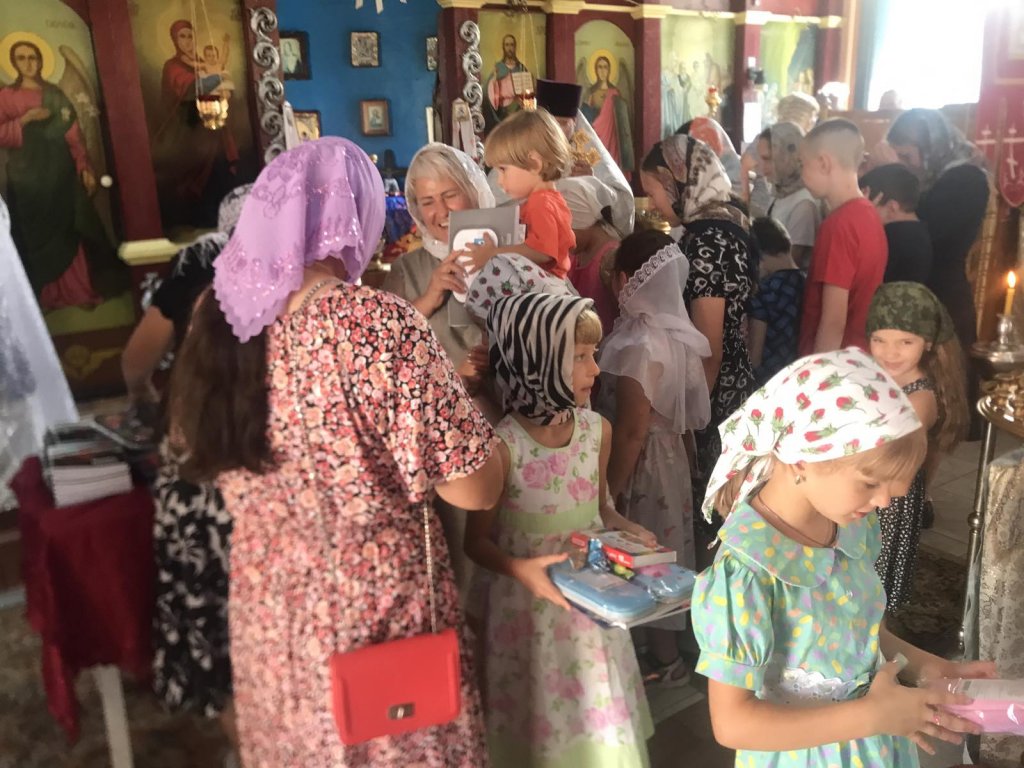 От прихода храма учащимся вручили канцелярские наборы и сладости.