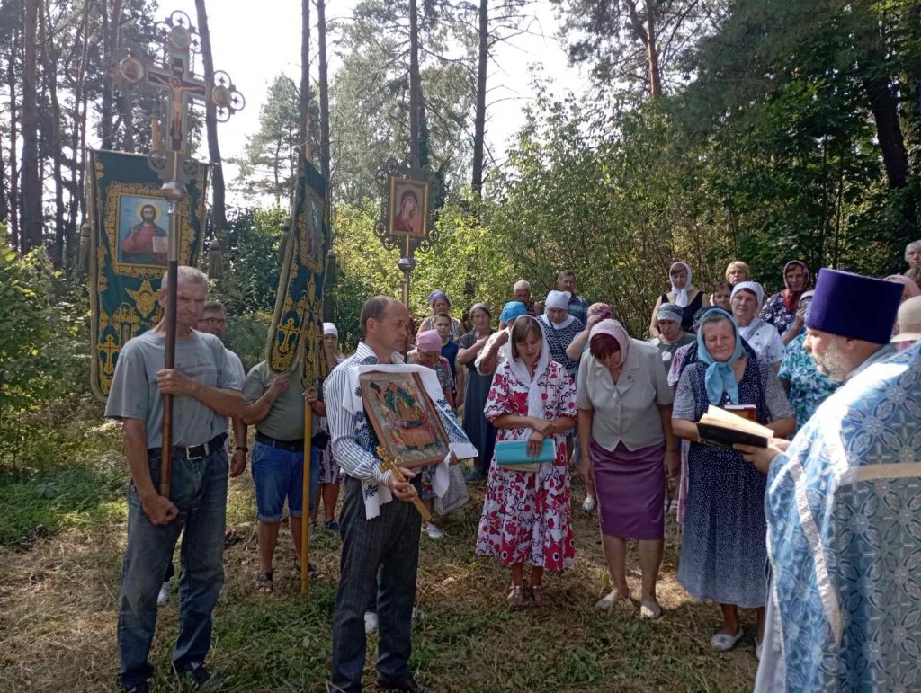С Крестом, хоругвями и иконой праздника жители посёлка прошли от одного придорожного креста до другого, установленного при въезде в населённый пункт. Настоятель прихода храма Покрова Пресвятой Богородицы в аг.Довск протоиерей Виталий Левчук совершил молебен с чтением акафиста перед иконой праздника.