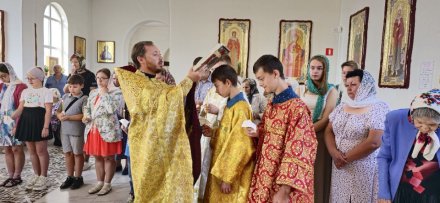 С пастырским наставлением ко всем присутствующим обратился настоятель прихода храма протоиерей Владимир Руденок. Он поздравил причастников с принятием Святых Христовых Тайн, всех ребят и педагогов – с наступающим учебным годом, пожелал старшеклассникам благополучного поступления.