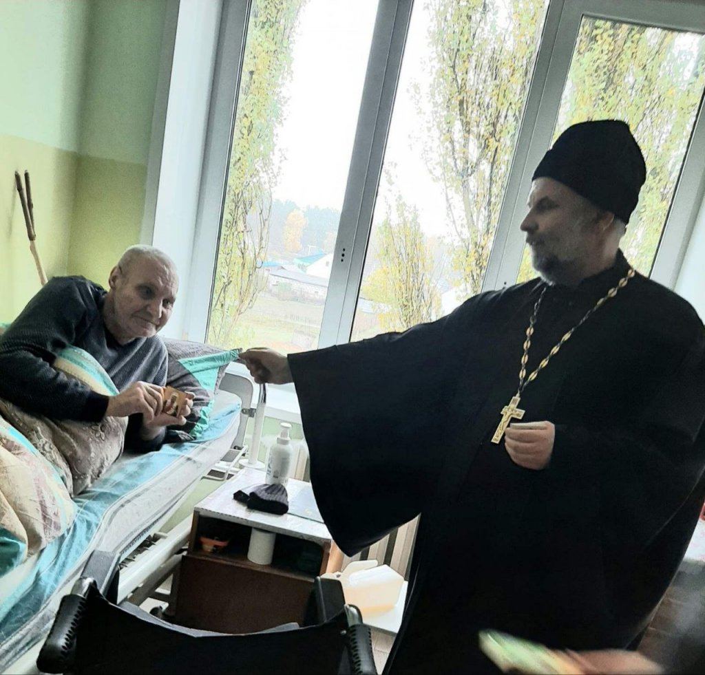 В рамках Покровских чтений волонтёры отряда «Парус» вместе с настоятелем прихода храма Покрова Пресвятой Богородицы аг. Довск протоиереем Виталием Левчуком посетили отделение сестринского ухода Довской участковой больницы.