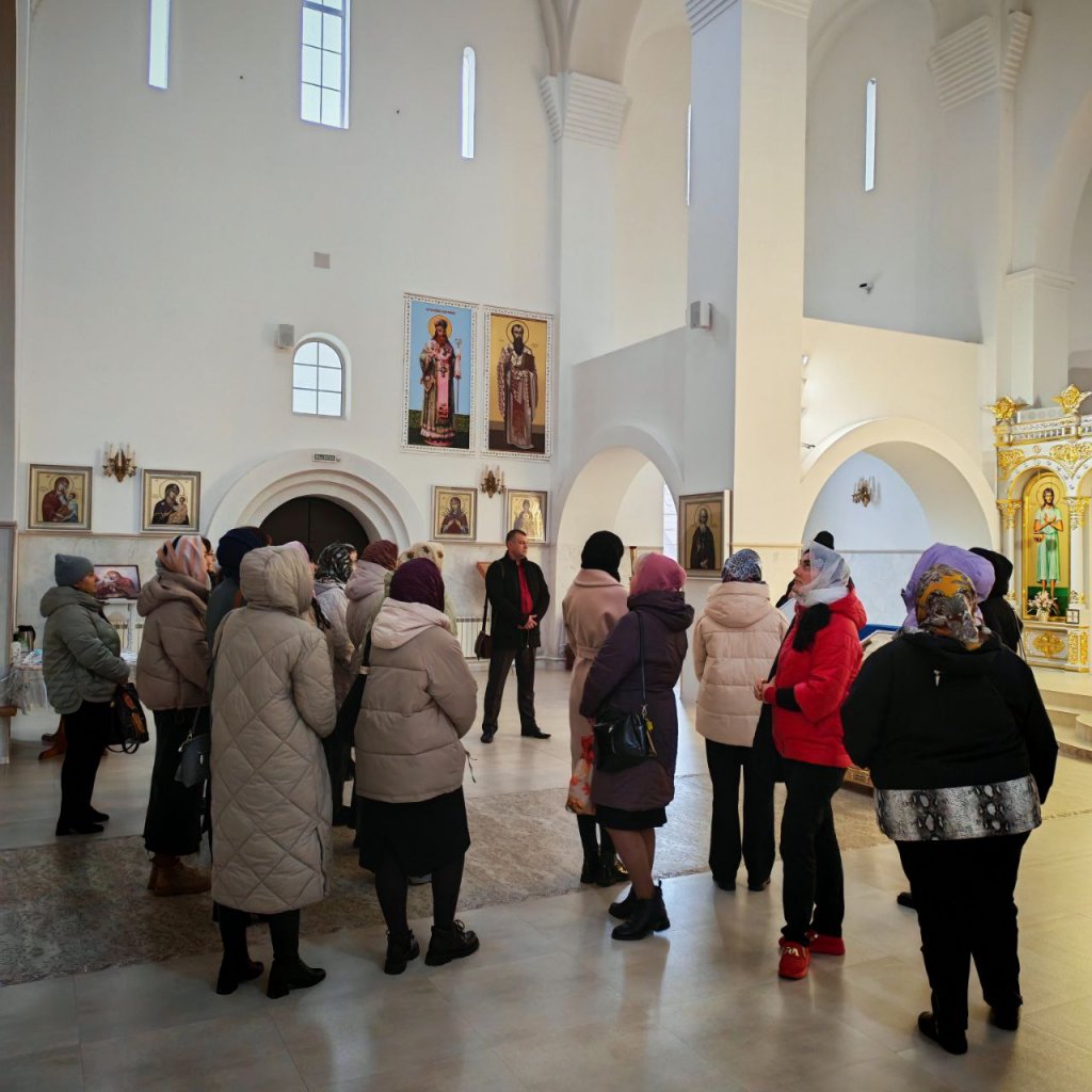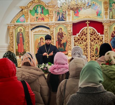 Благочинный Рогачёвского церковного округа иерей Алексей Сергеев встретил экскурсантов и познакомил их с историей, устройством храма и его святынями.
