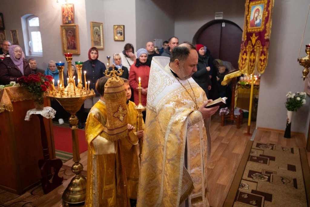 Его Высокопреосвященству сослужили ректор Минской духовной академии архимандрит Афанасий Соколов, секретарь Гомельской епархии протоиерей Георгий Алампиев, благочинный Рогачёвского округа иерей Алексей Сергеев, настоятель прихода протоиерей Виталий Левчук и духовенство епархии.