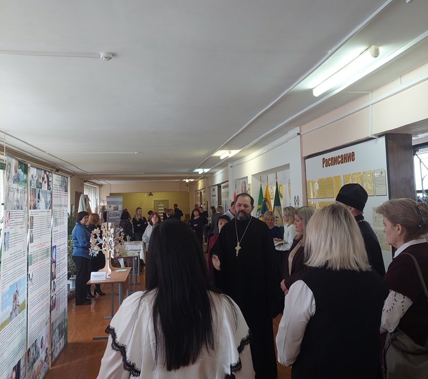 Отец Артемий Кривицкий познакомил присутствующих с благотворительной деятельностью епархиального общества «Матушки», выставка которого была посвящена святости рождения и материнства.