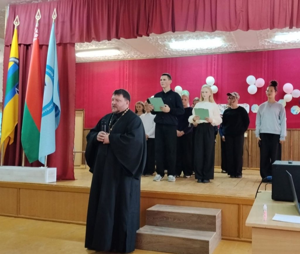 Иерей Александр Ткаченко, клирик прихода храма святого благоверного князя Александра Невского, встретился со старшеклассниками средней школы №6 г. Рогачёва, чтобы поздравить их с недавно прошедшим праздником Покрова Пресвятой Богородицы и поговорить о вечных ценностях — семье и материнстве.
