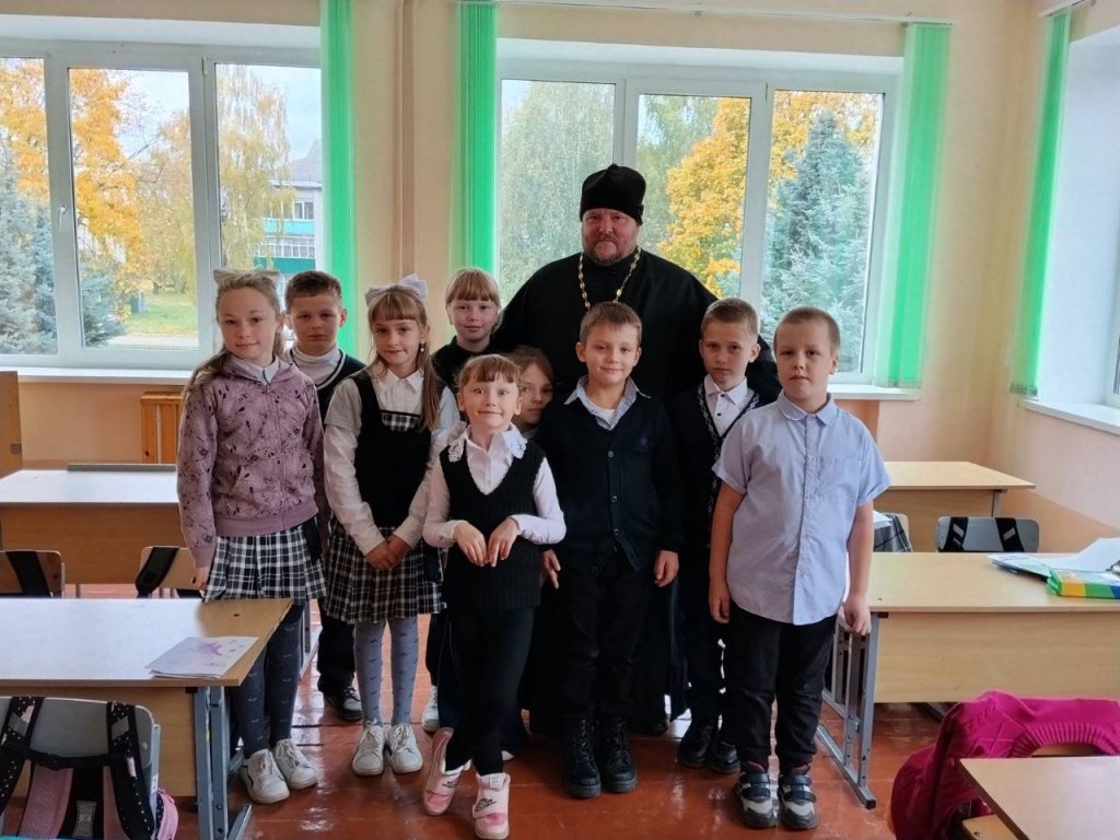 После концерта отец Владимир посетил учащихся второго и четвертого классов, где провел беседу о глубоком смысле праздника Покрова Божией Матери, о Её заступничестве и любви к людям. Также он поговорил с ребятами о главных ценностях – уважении и любви к родителям, о важности добрых и доверительных отношений в семье.