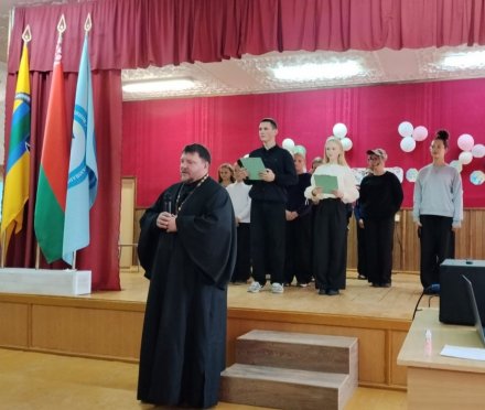 Почетным гостем праздника стал настоятель прихода храма святых апостолов Петра и Павла протоиерей Владимир Руденок. В завершение концерта отец Владимир поздравил всех собравшихся родителей и обратился к ним с тёплыми словами.