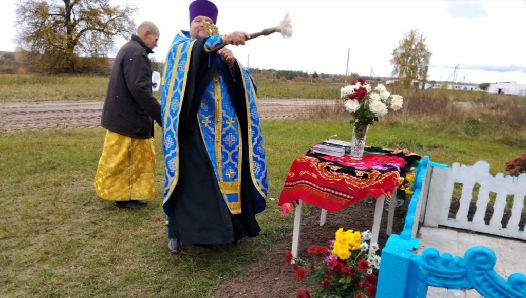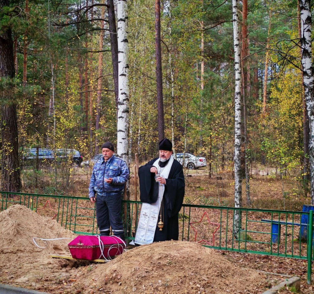 Перед захоронением отец Николай совершил заупокойную литию у братской могилы. Была вознесена молитва о даровании прощения грехов и вечного упокоения воинам, положившим жизнь за Отечество.