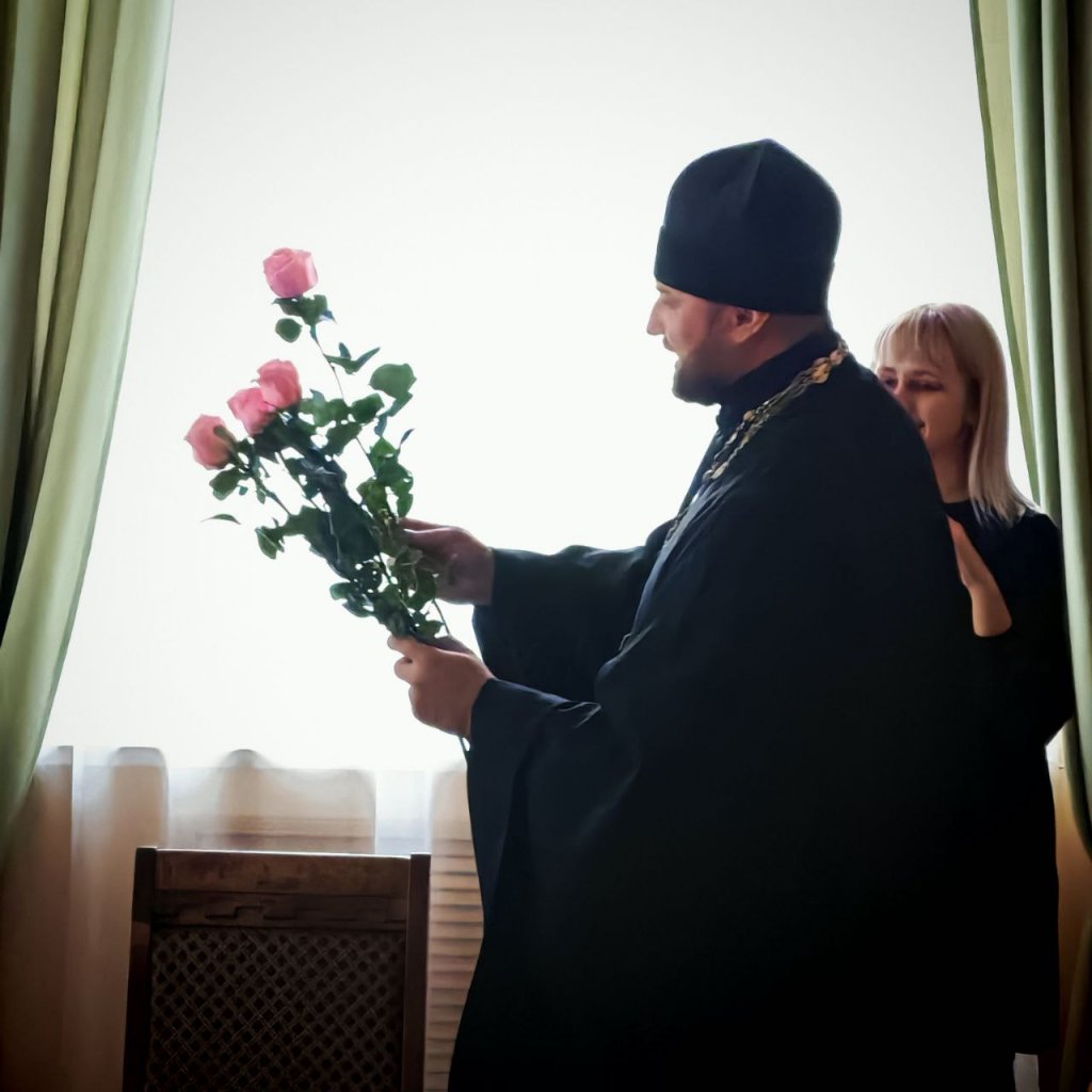 По сложившейся традиции отец Алексей вручил всем матерям цветы — символ признания и благодарности за их великий труд.