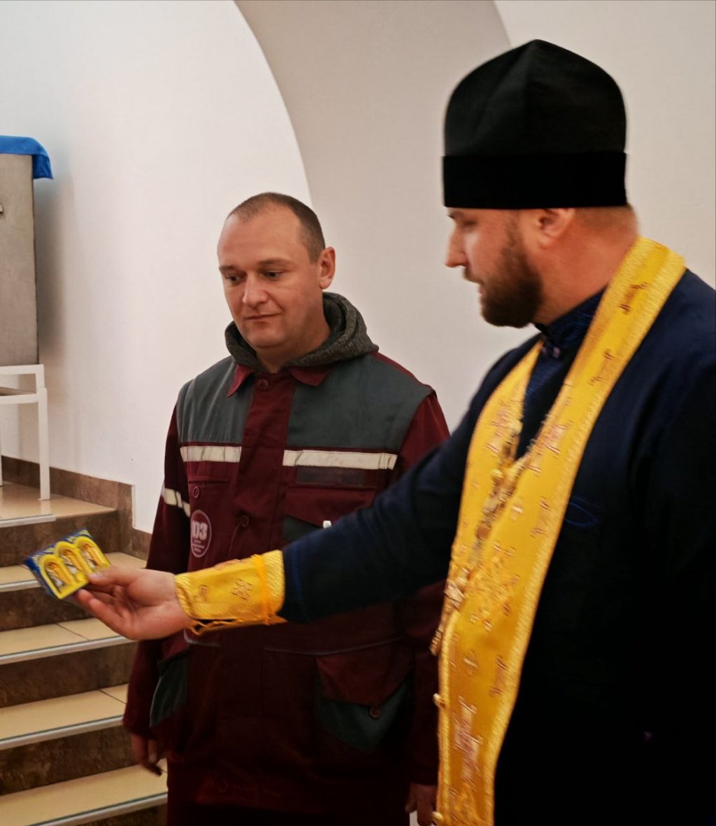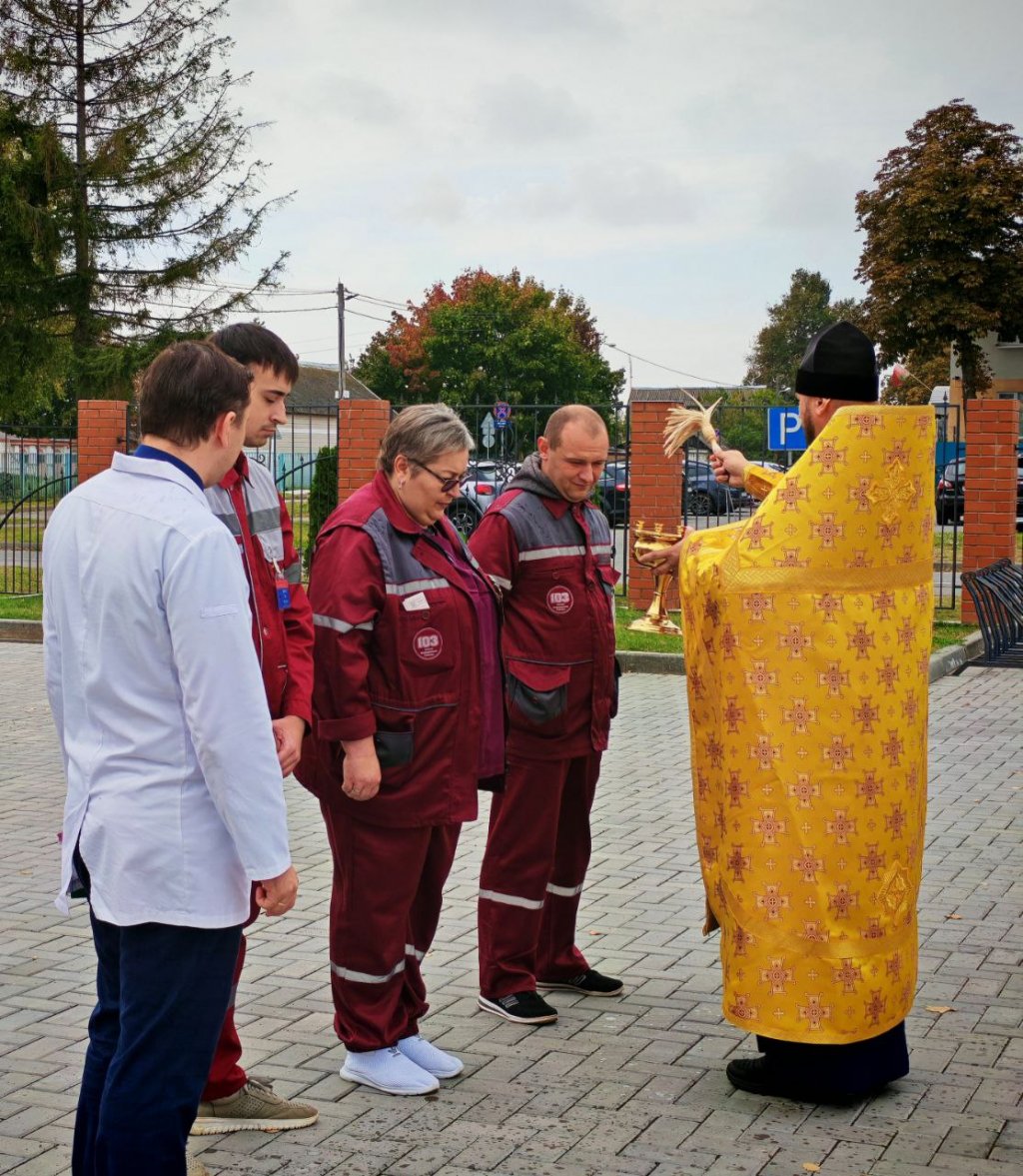В чине освящения приняли участие главный врач больницы Максим Юрьевич Шестопалов и сотрудники станции. Отец Алексей окропил новую «скорую» святой водой, испрашивая Божию благодать и помощь для всех, кто будет трудиться в этом автомобиле, а затем благословил медицинских работников на их милосердный и спасительный труд.