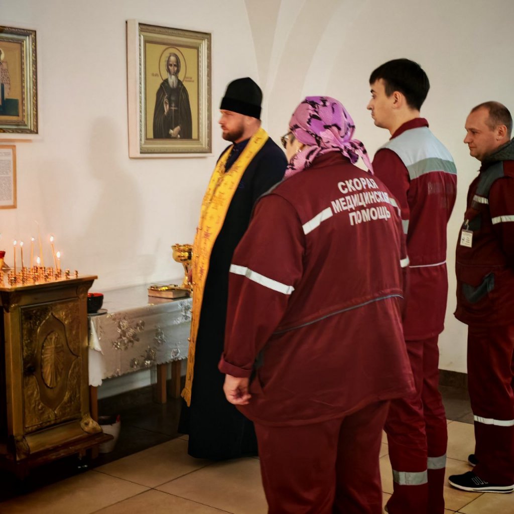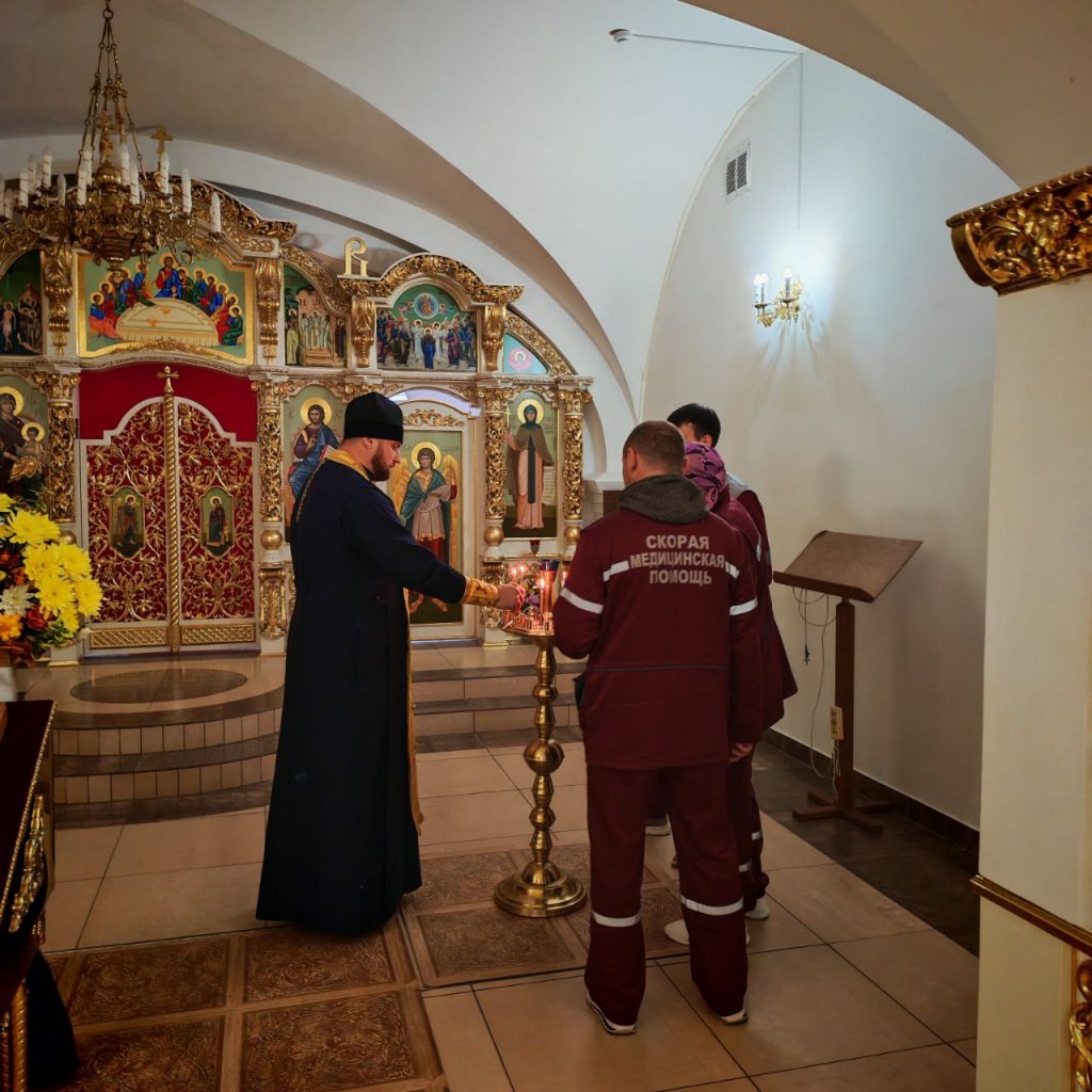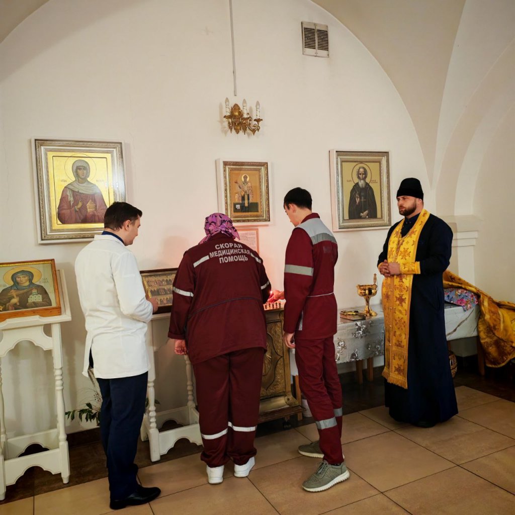 По окончании чина врачи и фельдшеры скорой помощи поставили свечи и приложились к святыням, молитвенно испрашивая у Господа сил и помощи в их важном служении ближним.