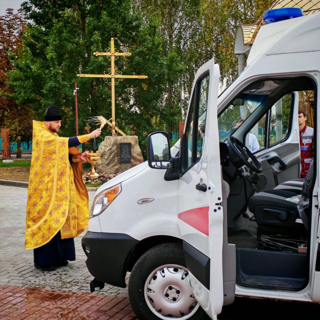 Парк скорой помощи Рогачёвской центральной районной больницы пополнился новым автомобилем. Перед первым выездом машину освятил благочинный Рогачёвского церковного округа иерей Алексей Сергеев.
