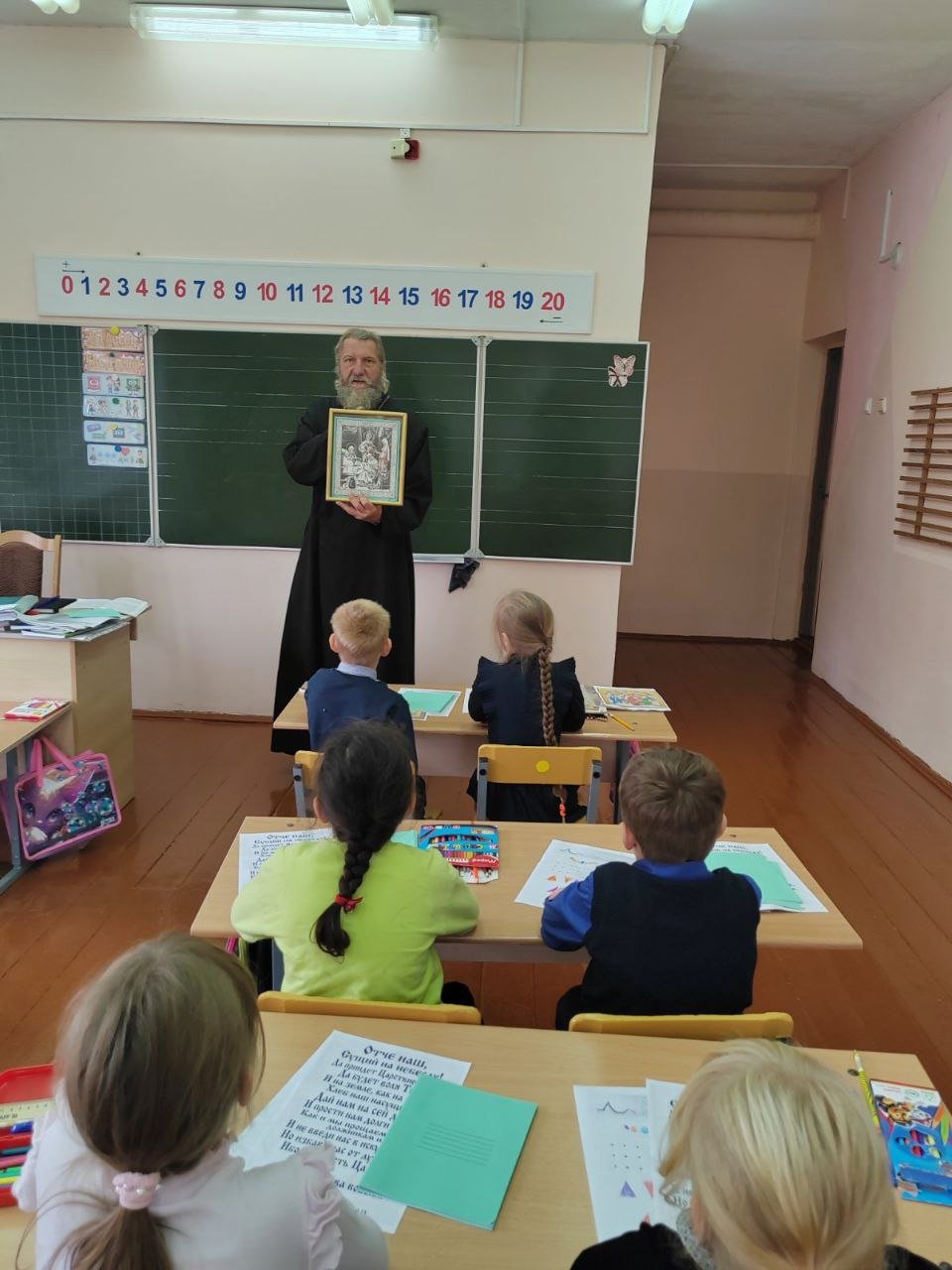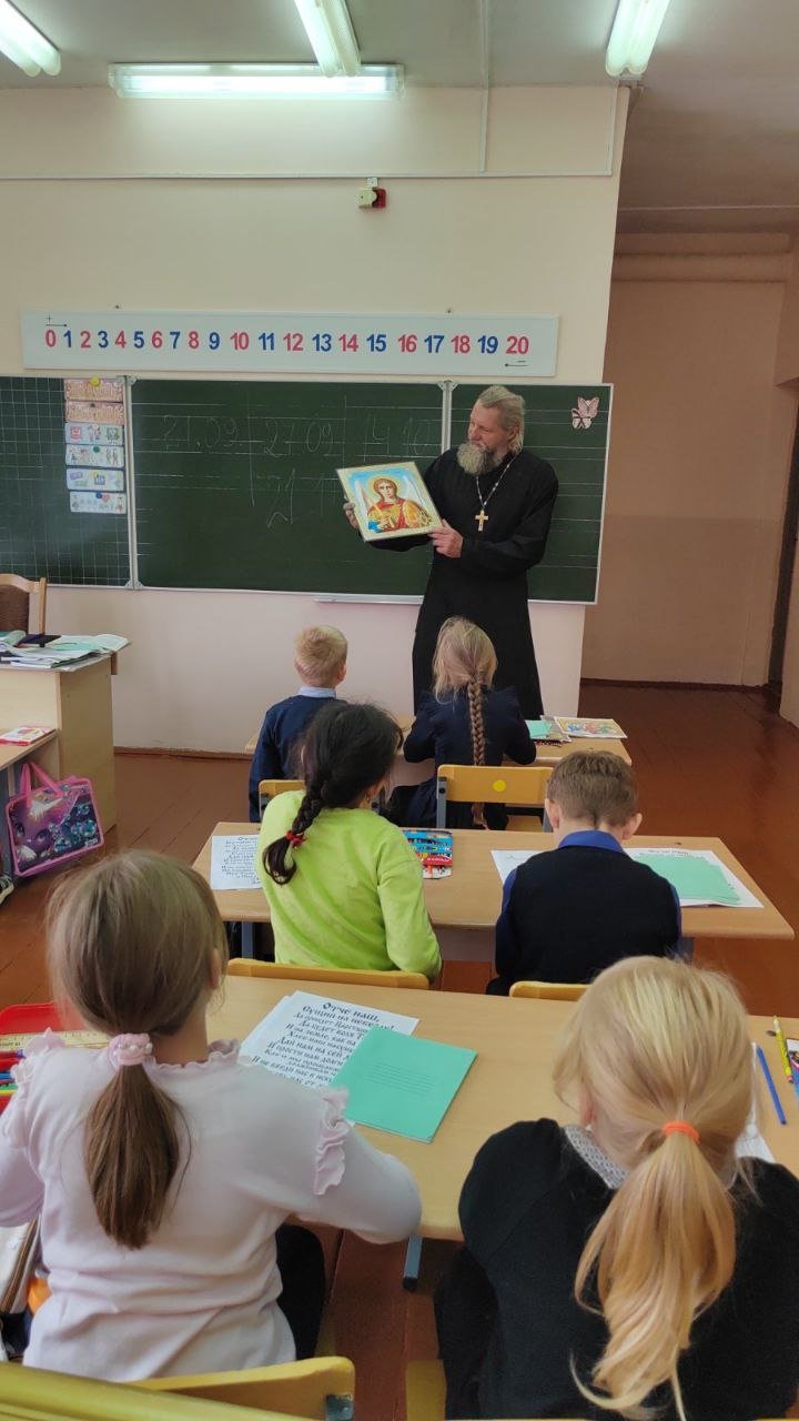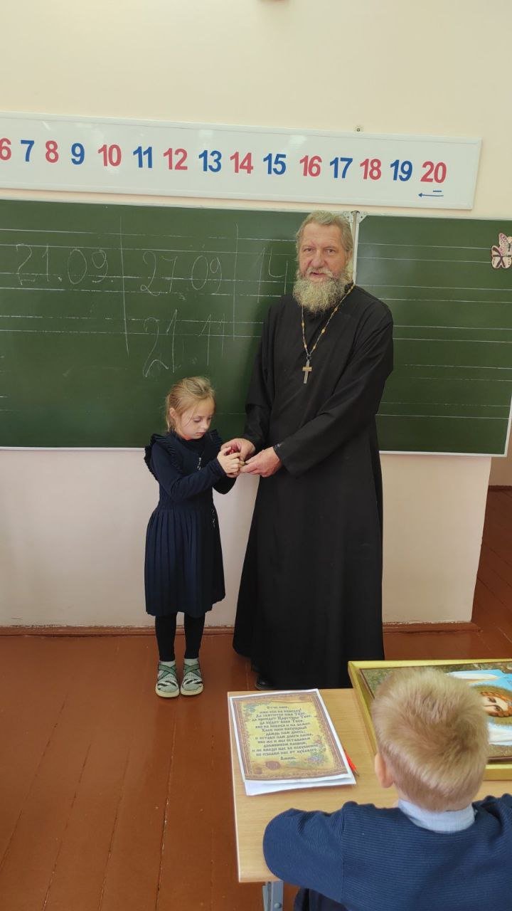 В начальной школе агрогородка Дворец для первоклассников прошел духовно-просветительский урок «Православные праздники осени». Его провел настоятель прихода храма Святого Духа протоиерей Владимир Янчесов.
