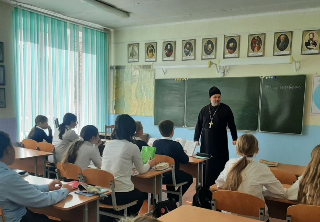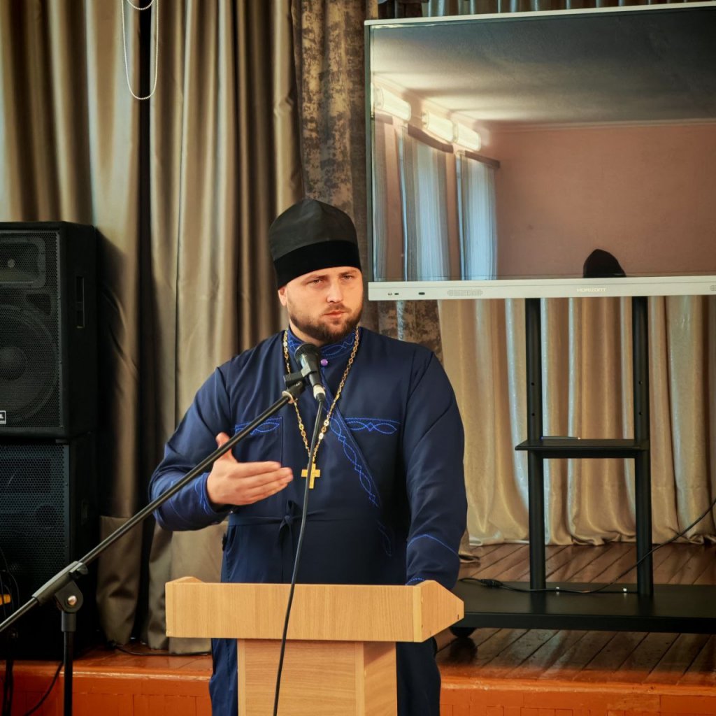 С учащимися 5–7 классов отец Виталий провёл духовную беседу, посвященную празднику Воздвижения Честного и Животворящего Креста Господня. Священник рассказал школьникам об истории обретения Креста, раскрыл его глубокий духовный смысл и объяснил, почему орудие позорной казни стало для христиан символом победы над смертью и грехом, источником радости и спасения.