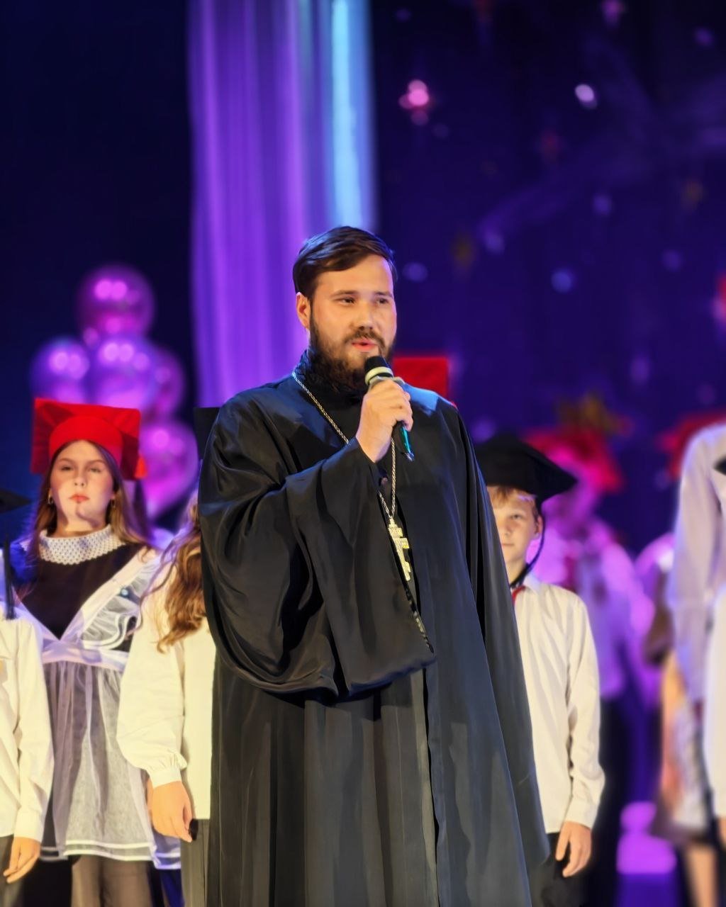 Почётное право напутствовать молодое поколение было предоставлено клирику прихода храма святого благоверного князя Александра Невского в г. Рогачёве иерею Александру Ткаченко. Обращаясь к собравшимся, отец Александр подчеркнул глубокую связь между образованием и духовным становлением личности, пожелав учащимся, чтобы их путь к знаниям был озарён светом истины и мудрости.