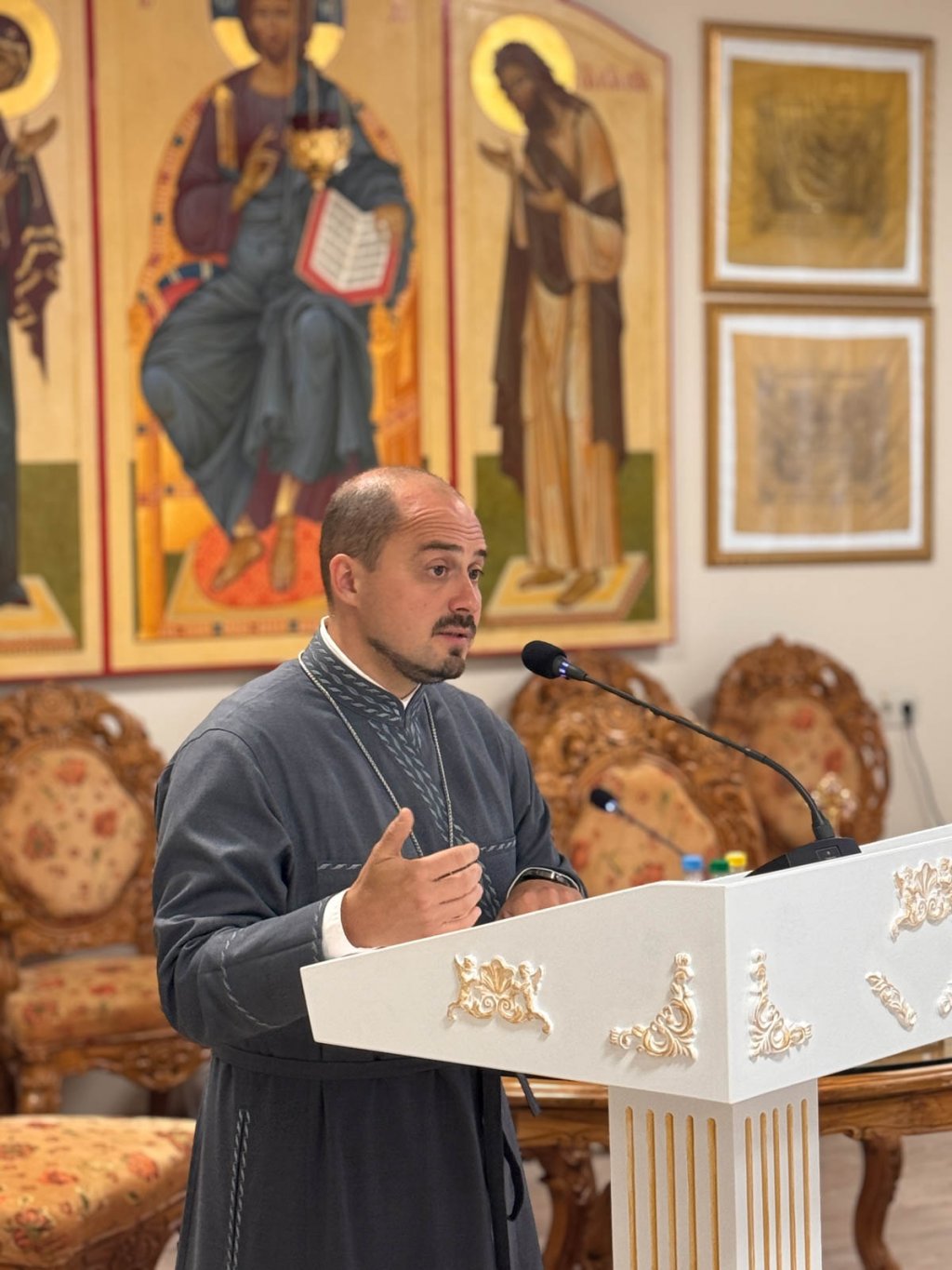 Перед участниками семинара «Духовная поддержка в кризисных ситуациях» выступил иерей Роман Артёмов — председатель Синодального отдела по церковной благотворительности и социальному служению Белорусской Православной Церкви, преподаватель Минской духовной академии.