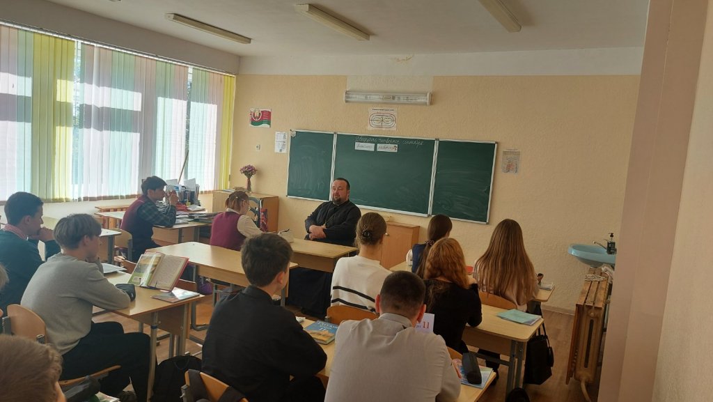 24 сентября в средней школе №6 г.Рогачёва прошла встреча клирика прихода храма святого благоверного князя Александра Невского иерея Дионисия Фенюка с учащимися старших классов.
