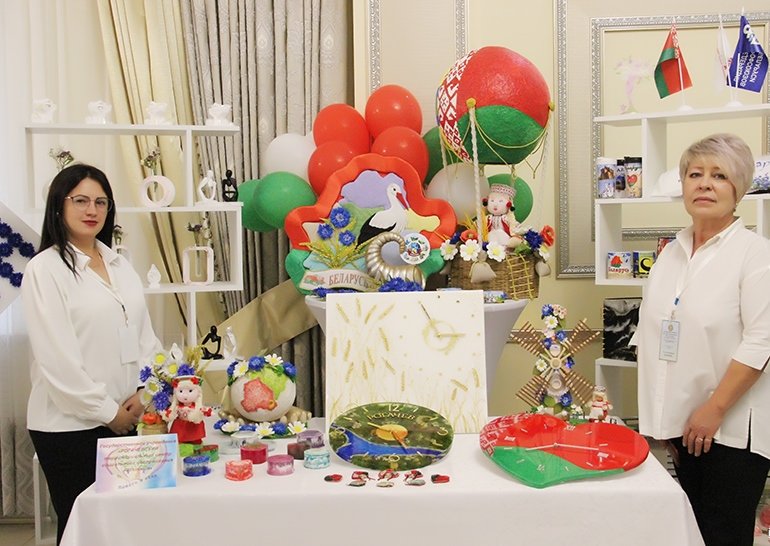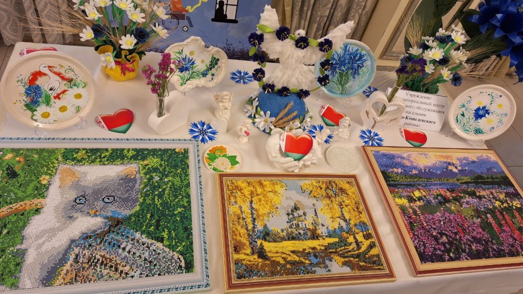 Сопровождала творческое мероприятие выставка «Шануйце дзіва на планеце – святую нашу Беларусь». Каждое произведение: яркие панно, оригинальные украшения, неповторимые предметы декора – хранит в себе частичку душевного тепла и надежды своего мастера.