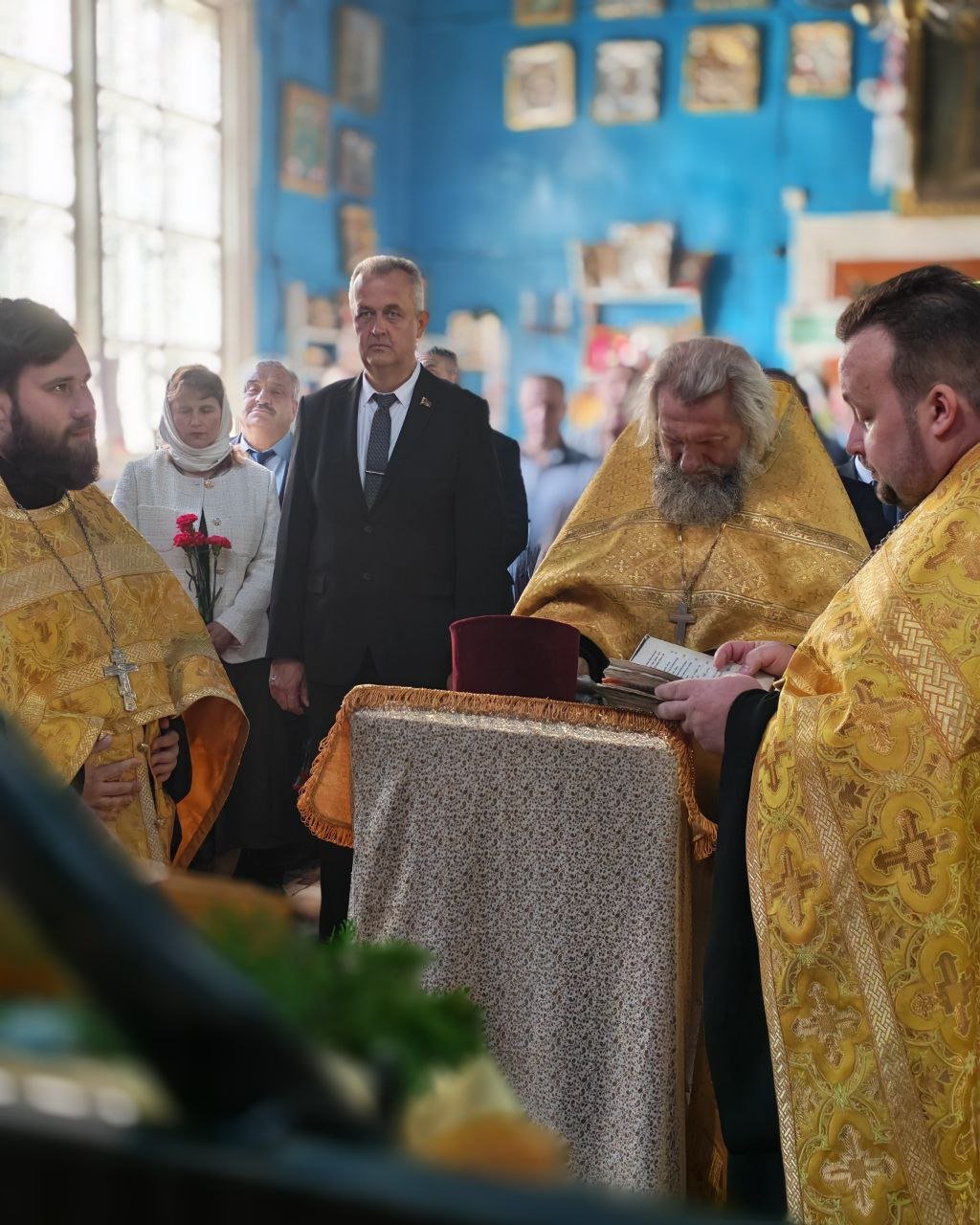Богослужение совершил настоятель прихода протоиерей Владимир Янчесов в сослужении клириков храма святого благоверного князя Александра Невского г. Рогачёва: иерея Дионисия Фенюка и иерея Александра Ткаченко.