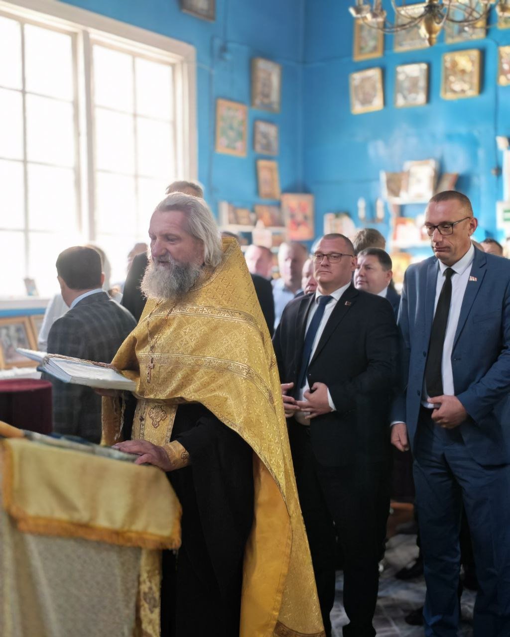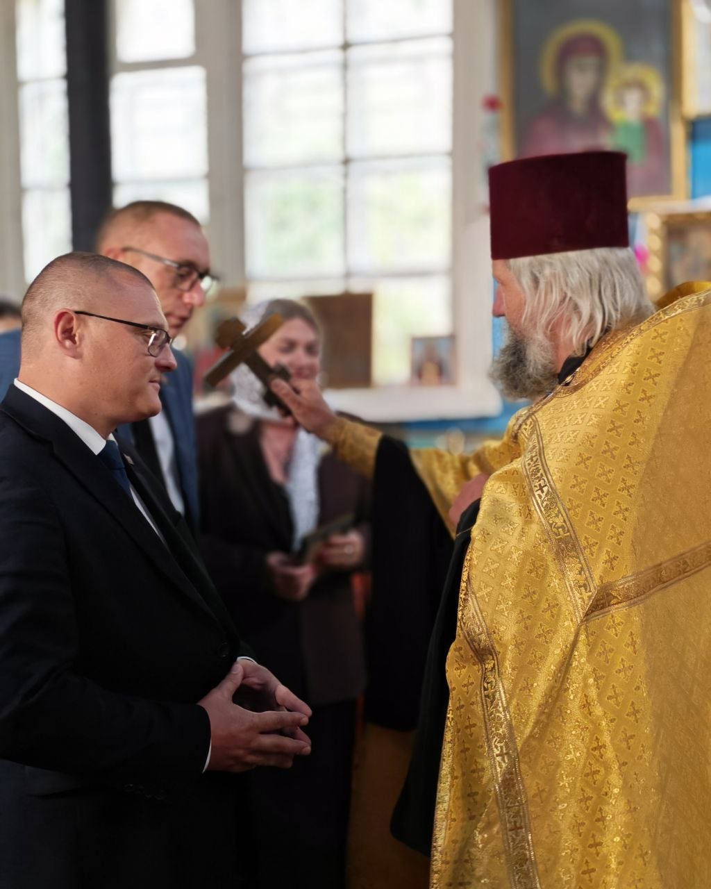 Для гостей протоиерей Владимир Янчесов провел экскурсию по храму, познакомил с его историей и духовными традициями. В завершение встречи священнослужители вручили почётным гостям иконы в благословение за их труды.