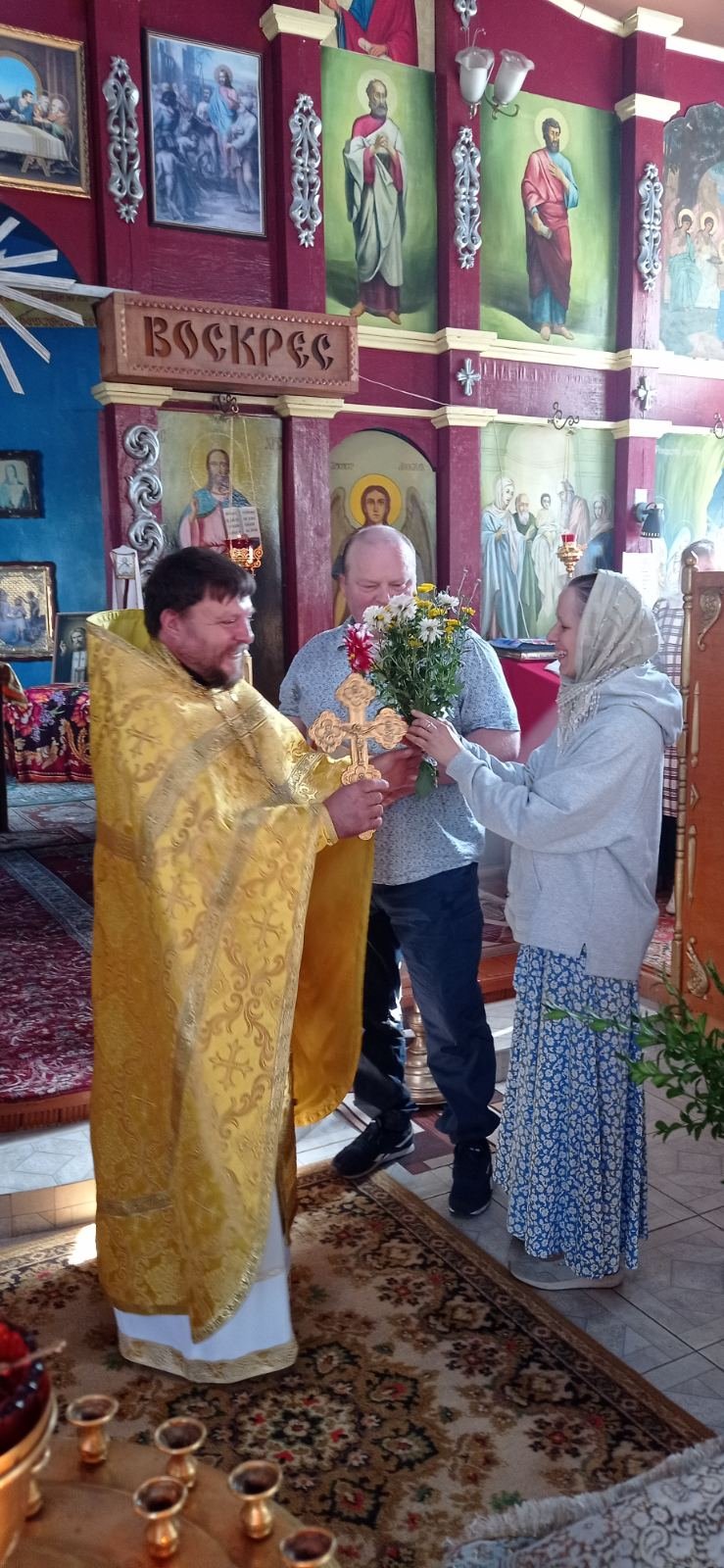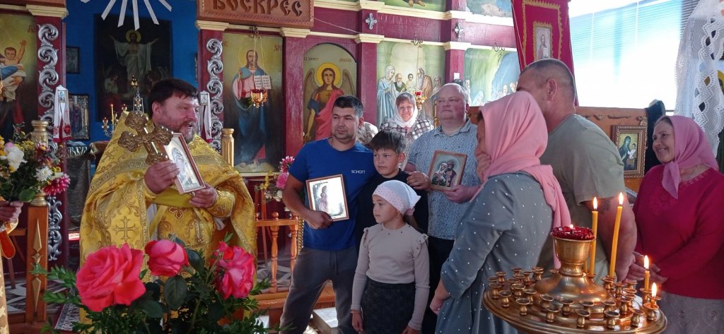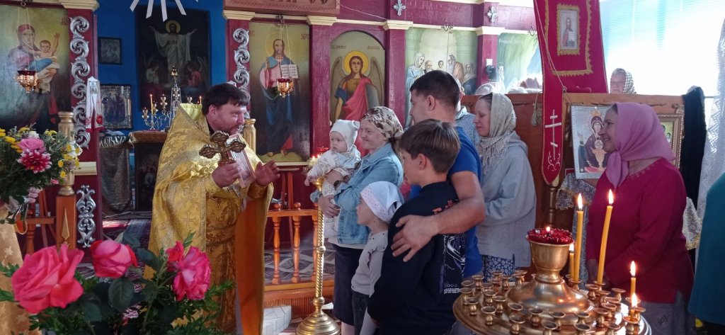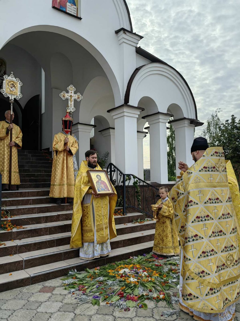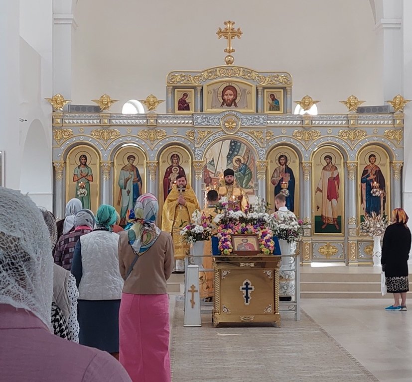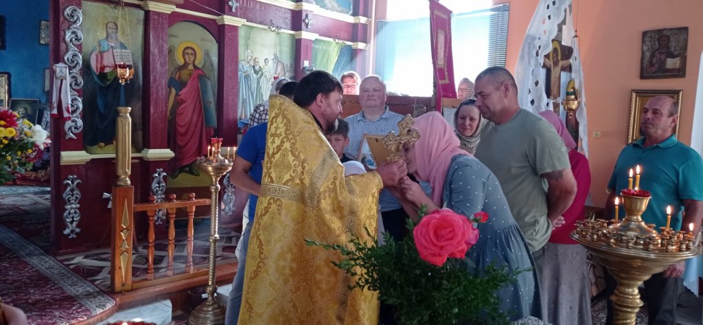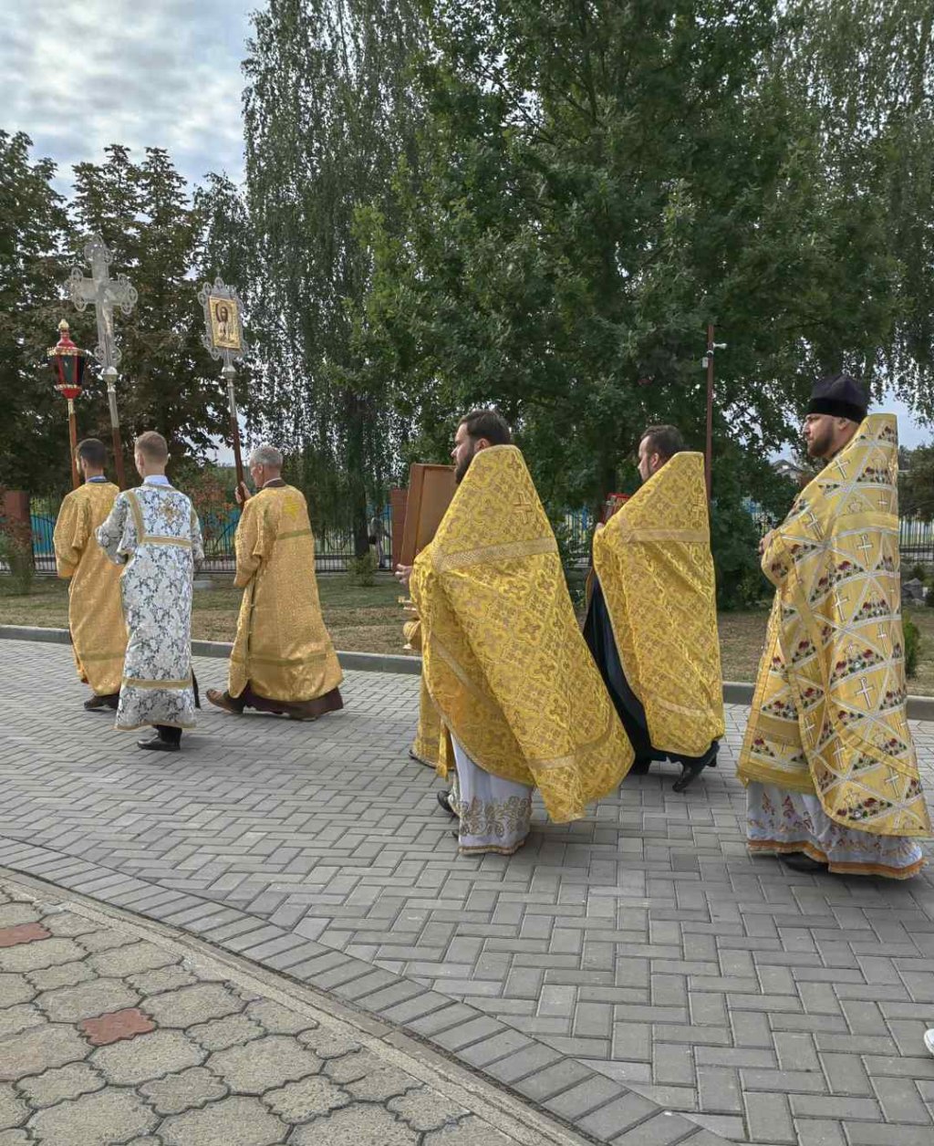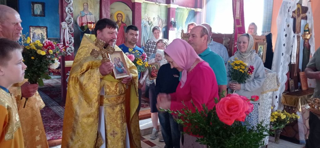 По завершении Литургии состоялся крестный ход: верующие с иконами и хоругвями под молитвенные песнопения обошли вокруг храма.