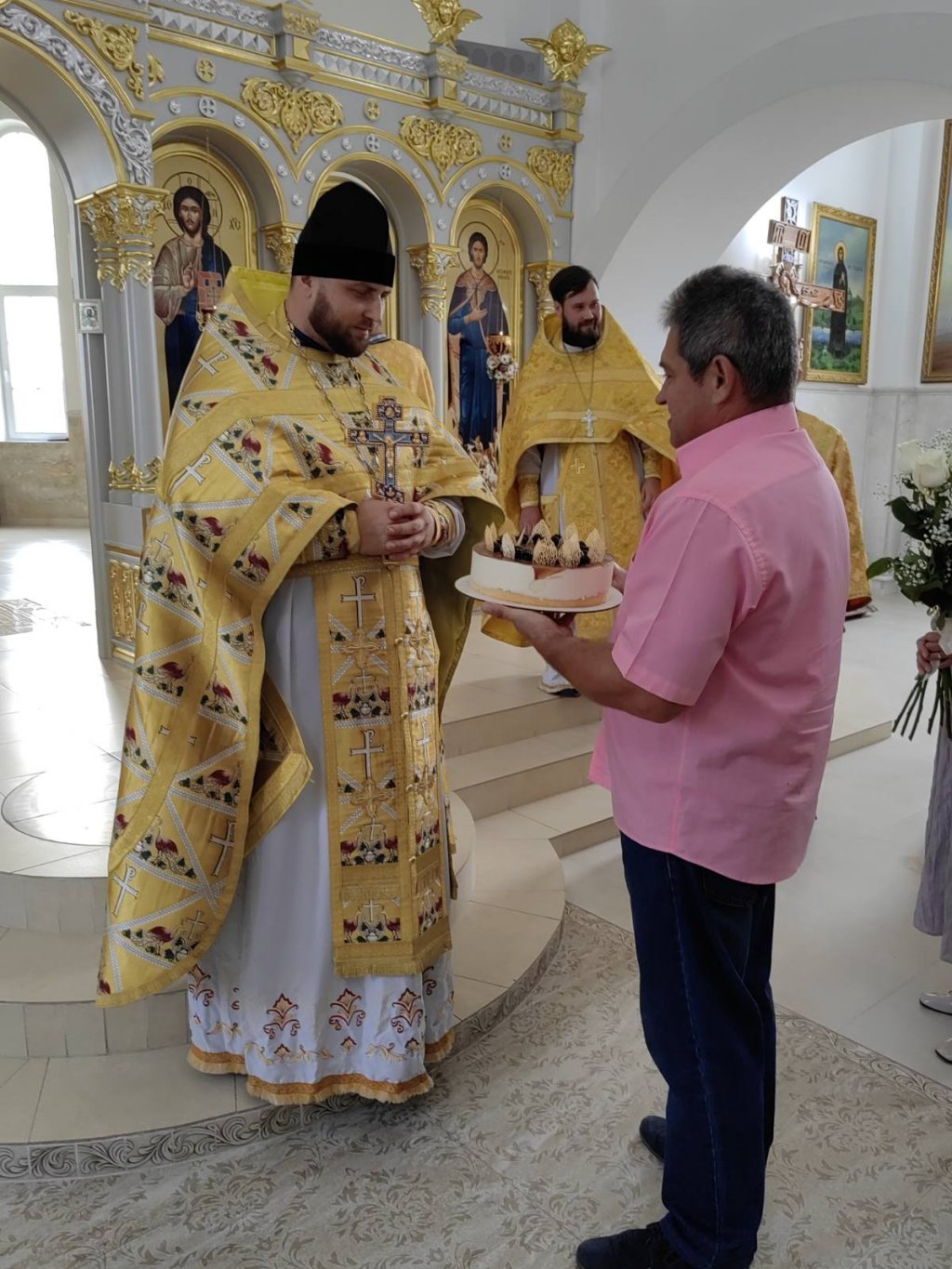 Затем прихожане поздравили отца Алексея с Днём рождения, а клирика храма иерея Александра Ткаченко - с днём Ангела. Пожелали батюшкам Божией помощи во всех трудах и заботах, покровительства святого благоверного князя Александра Невского.