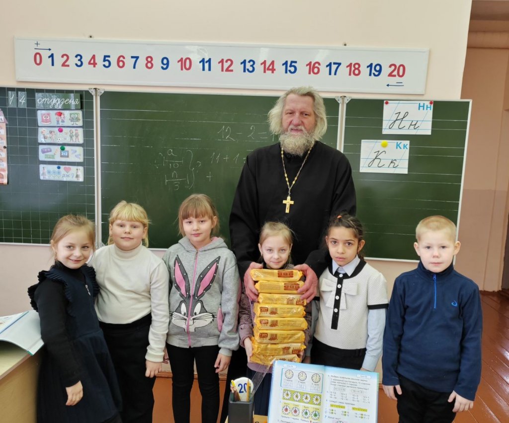 В завершение встречи отец Владимир, по святочной традиции, вручил каждому ученику сладкий подарок, что вызвало море улыбок и искреннюю детскую радость.