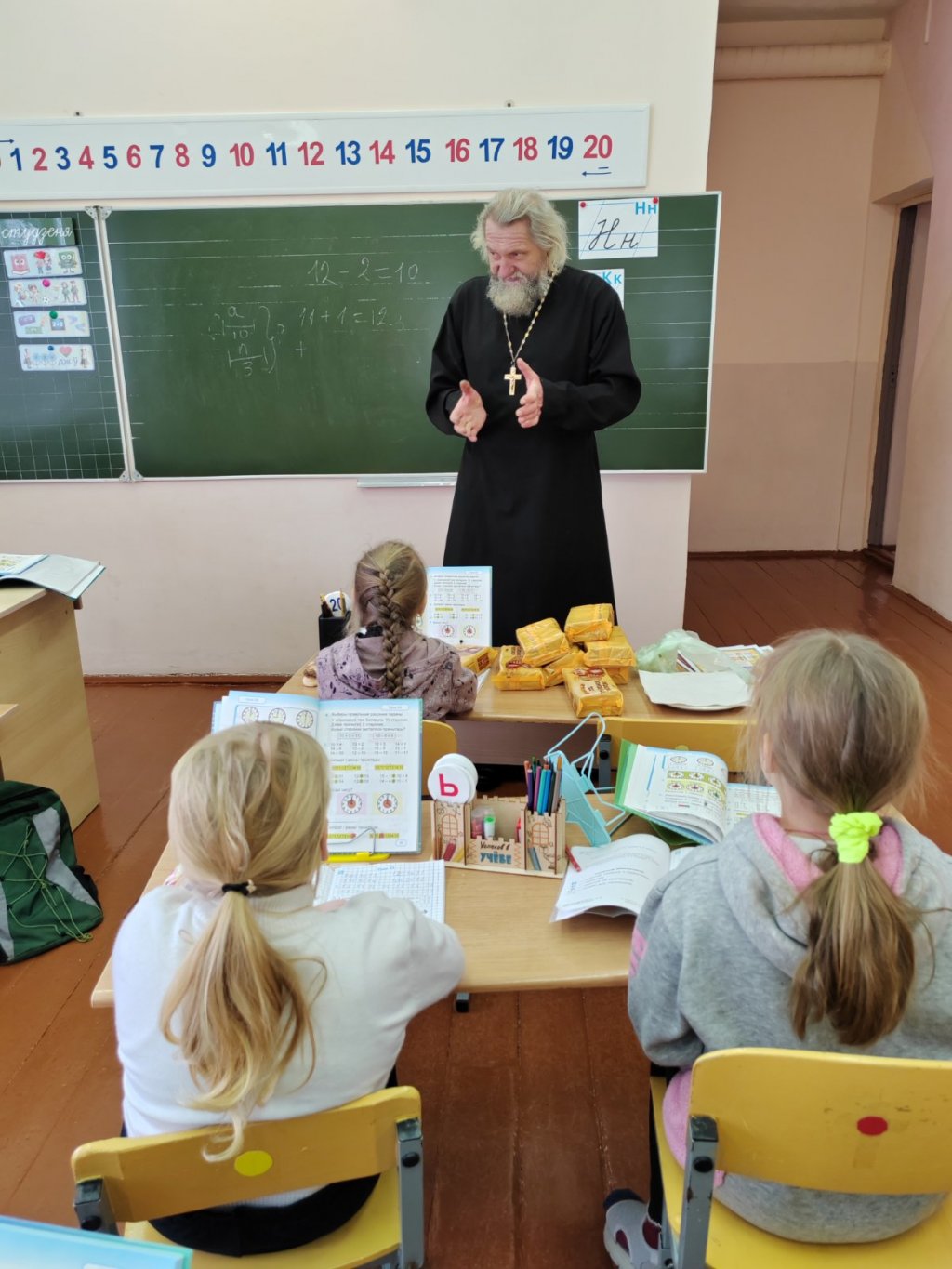 14 января протоиерей Владимир Янчесов, настоятель прихода храма Святого Духа в аг. Дворец, провел встречу с первоклассниками местной школы. Он поделился с ребятами светлой атмосферой Рождественских праздников: рассказал о рождении Христа и о значении православного новолетия.