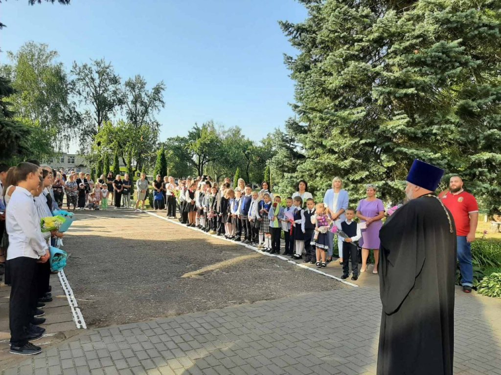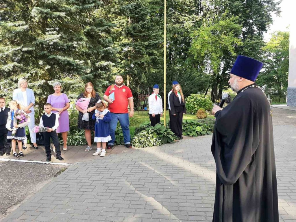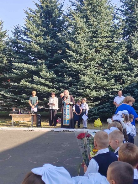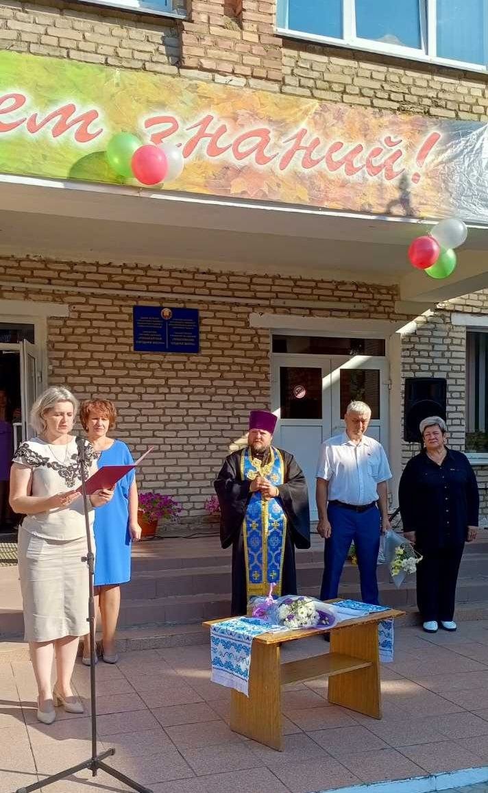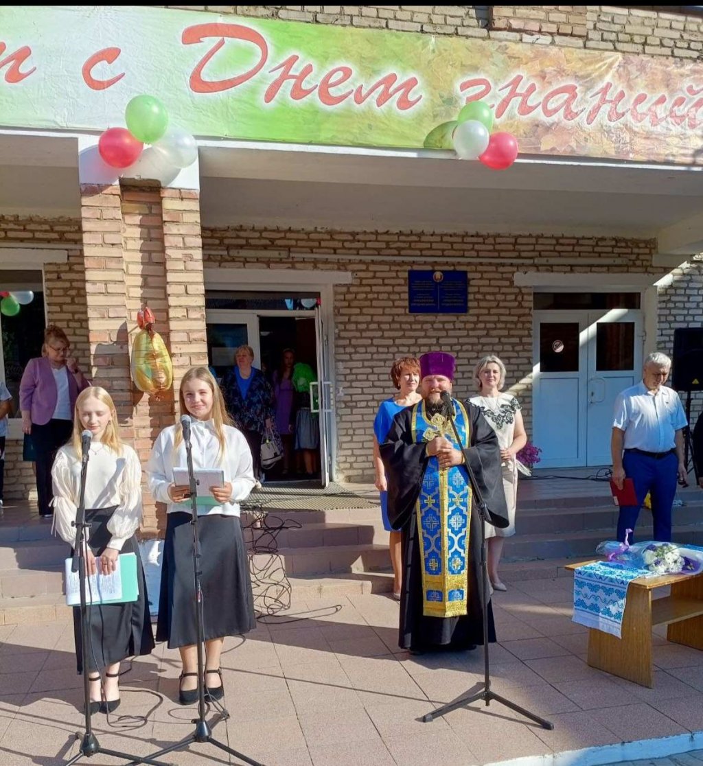 Настоятель местного храма святых апостолов Петра и Павла протоиерей Владимир Руденок пришел поздравить учителей, школьников и их родителей. В своем обращении он пожелал ребятам не только успехов в учебе, но и возрастания в доброте, мудрости и уважении друг к другу.