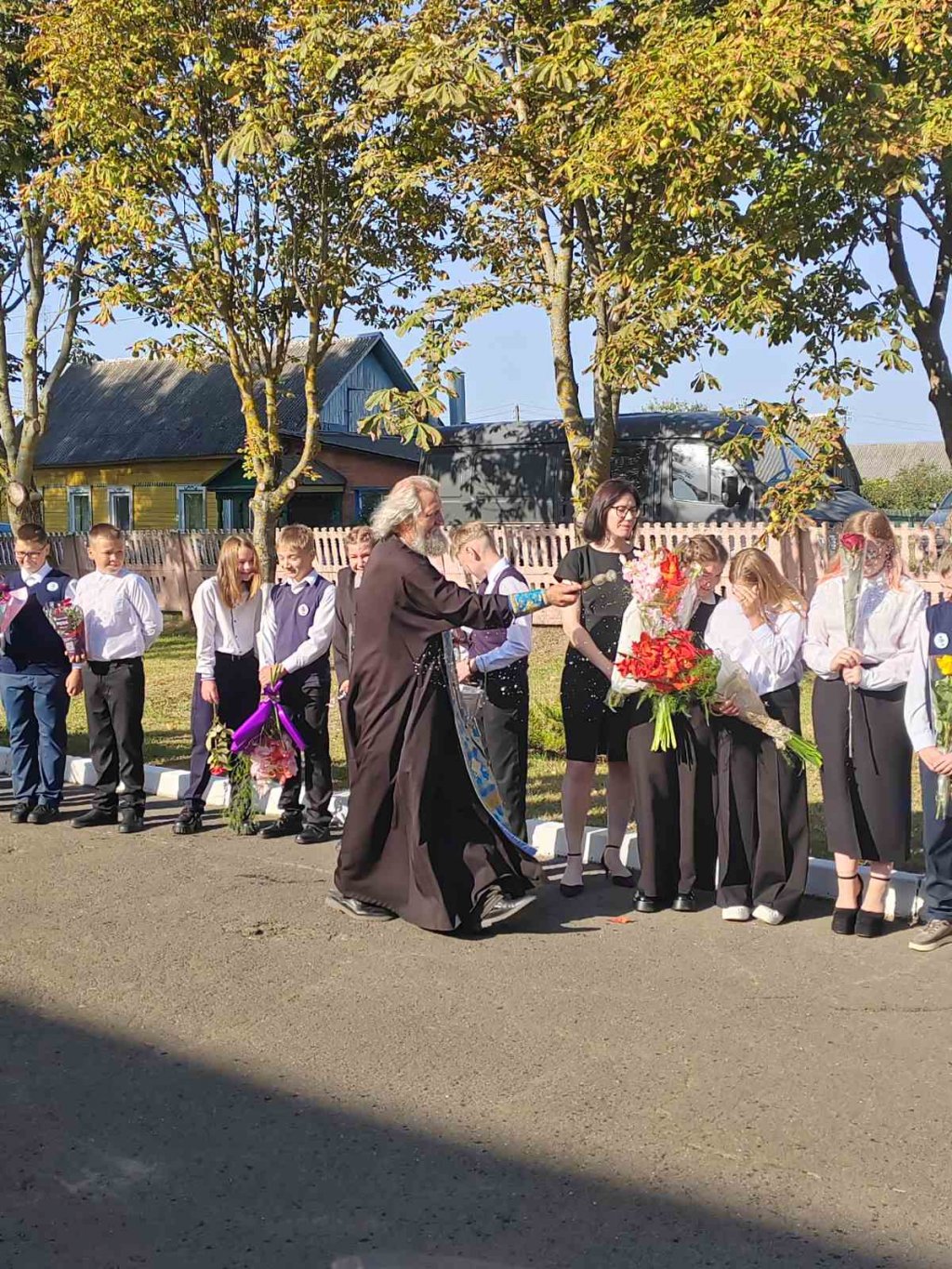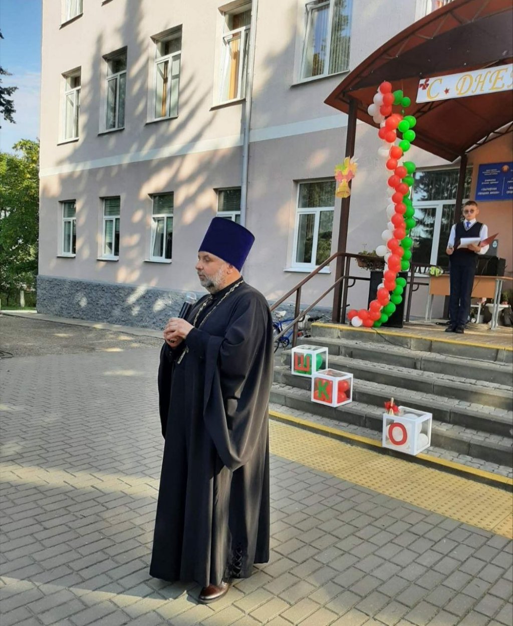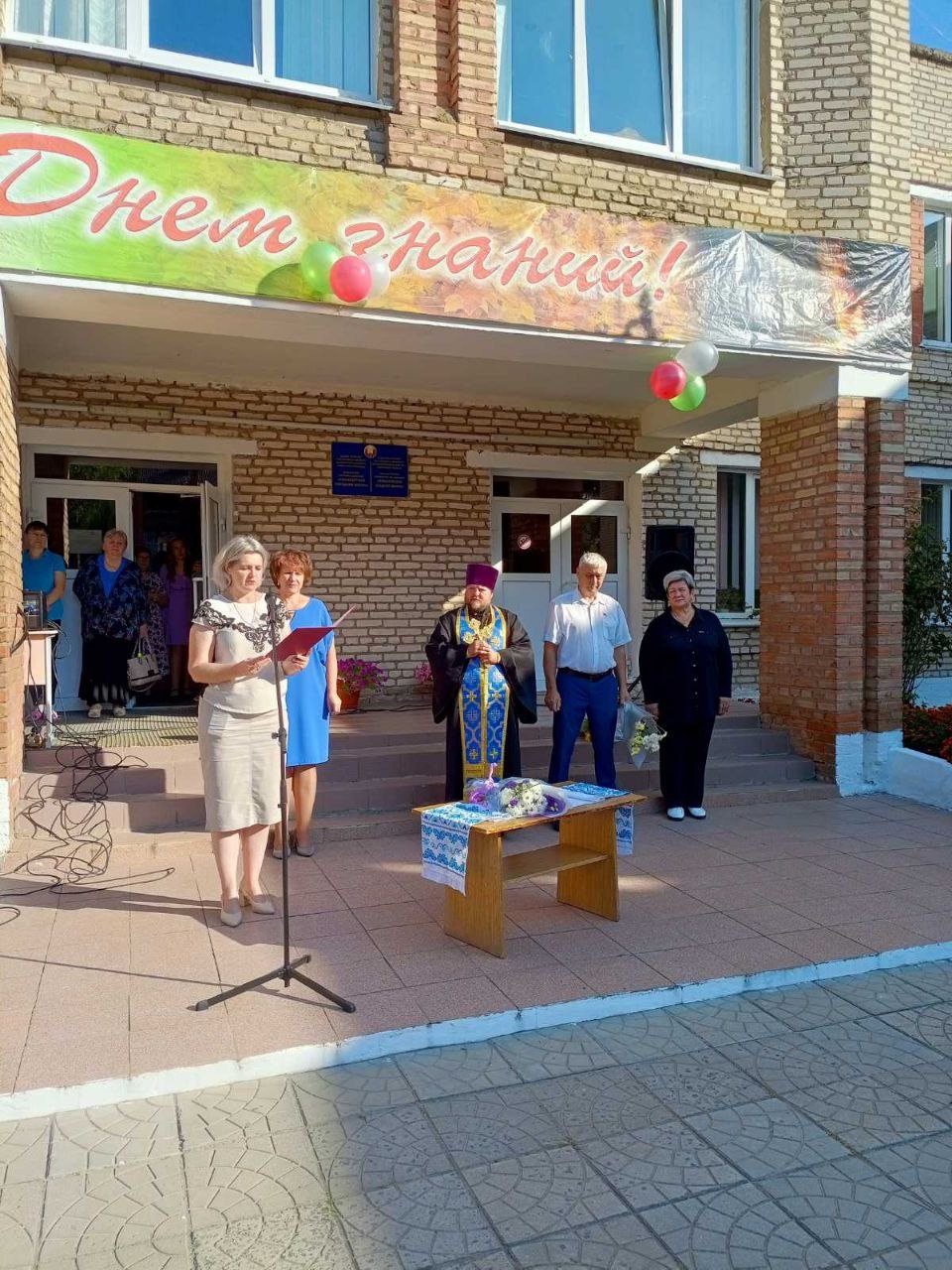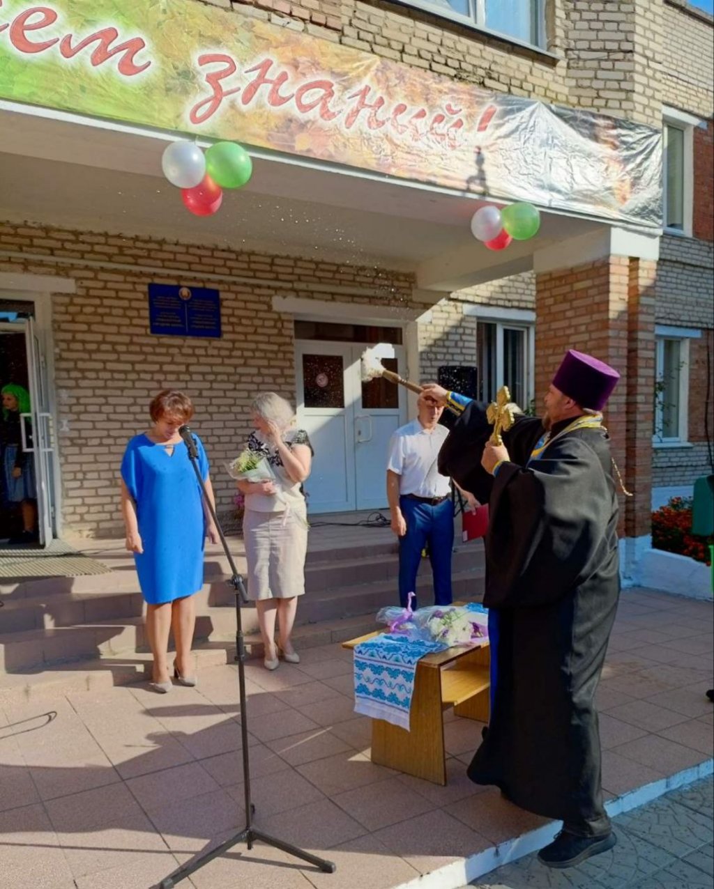 Настоятель местного храма святых апостолов Петра и Павла протоиерей Владимир Руденок пришел поздравить учителей, школьников и их родителей. В своем обращении он пожелал ребятам не только успехов в учебе, но и возрастания в доброте, мудрости и уважении друг к другу.