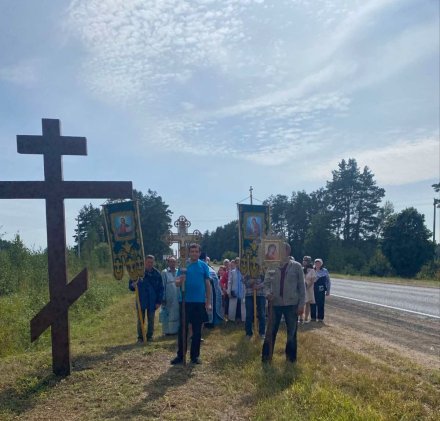 Протоиерей Виталий Левчук, настоятель прихода храма Покрова Пресвятой Богородицы в аг.Довск, совершил молебен у поклонного креста и в своей проповеди поблагодарил всех за совместную молитву, подчеркнув ее важность в жизни общины.