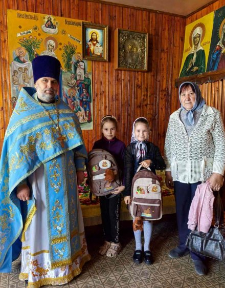 В рамках благотворительной акции «Соберём портфель к школе» настоятель храма Покрова Пресвятой Богородицы аг. Довск, протоиерей Виталий Левчук, вручил новые школьные портфели и наборы канцелярских товаров воспитанницам воскресной школы — Милане Гадеевой и Валерии Балутенко.