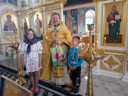 Настоятель прихода храма протоиерей Александр Атрощенко разделил радость семьи и вручил первокласснику школьные принадлежности, пожелал Сергею успешной учёбы и интересных уроков.