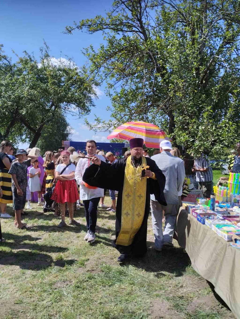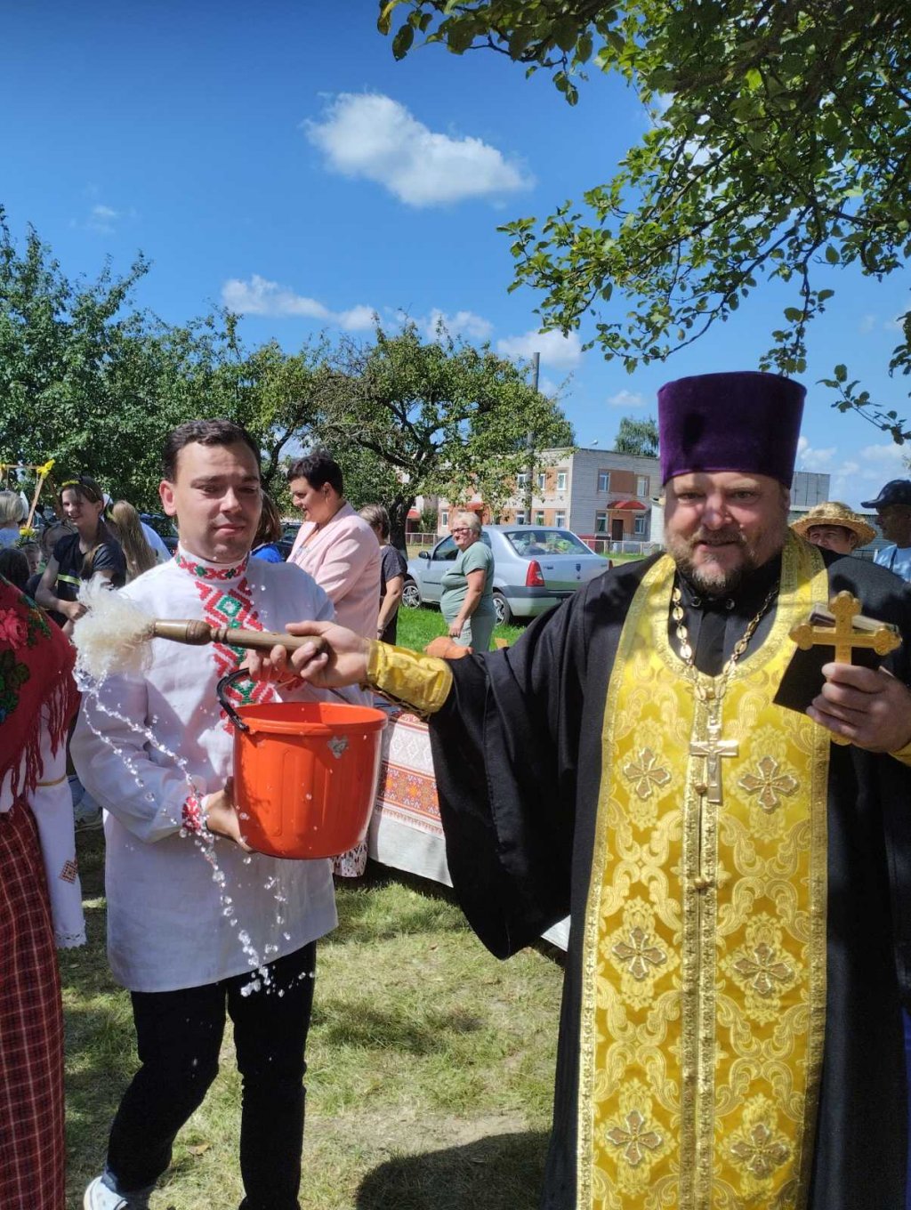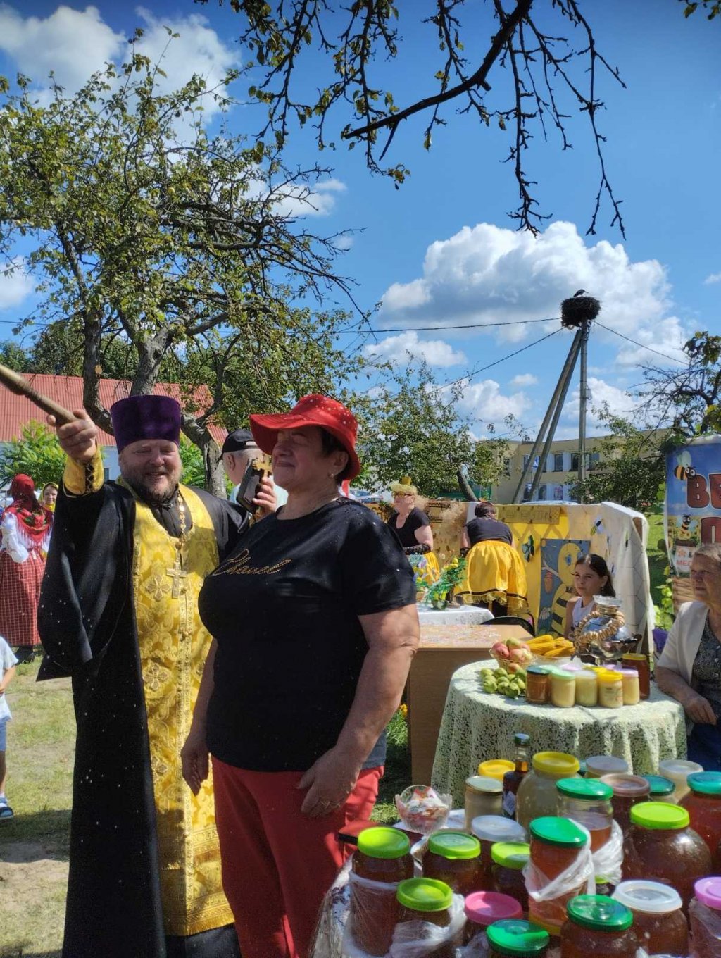 Участником традиционного мероприятия стал настоятель прихода храма святых апостолов Петра и Павла в аг.Поболово протоиерей Владимир Руденок. Священник освятил мёд и познакомил гостей с церковным праздником Изнесения Честных Древ Животворящего Креста Господня, который отмечают православные христиане 14 августа. Истоки его сложились ещё в 11 веке в Константинополе. Там по традиции для поклонения верующим выносили Крест, на котором был распят Спаситель. И крестным ходом проносили святыню до храма святой Софии Константинопольской.