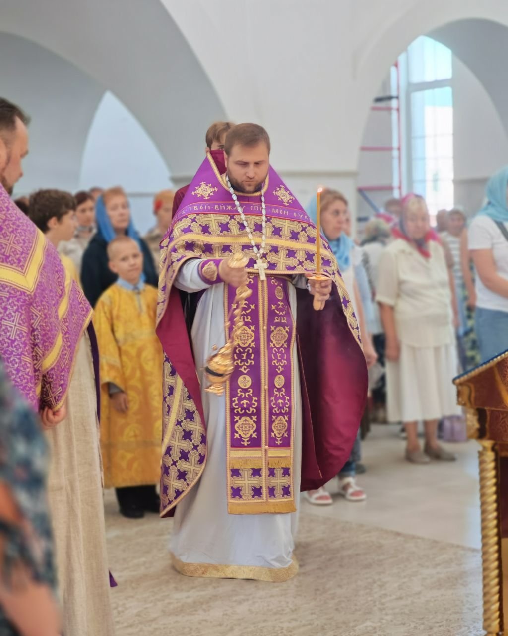 Отец Алексей поздравил прихожан с праздником и в проповеди напомнил верующим о духовном значении Креста в жизни христианина, призвал с покаянием и молитвой провести Успенский пост, подготовив себя к празднику Успения Пресвятой Богородицы.