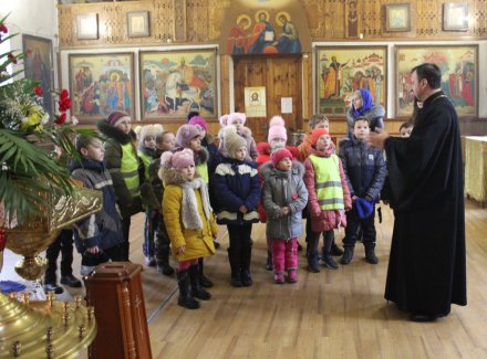 И снова храм святого благоверного князя Александра Невского встречал гостей. 4 января его посетили воспитанники оздоровительного лагеря "РОСТок" при средней школе № 4 г. Рогачёва имени В.С.Величко. Ребята долго готовились: знакомились с историей праздника Рождества Христова, своими руками делали открытки, чтобы принести их в дар Богомладенцу. Волнуясь, они положили свои подарки к праздничному вертепу. Протоиерей Александр Атрощенко рассказал ребятам о назначении и устройстве храма, объяснил, что Бог принял природу человека, чтобы спасти род человеческий от греха. Многие из этих младших школьников посещают факультативные занятия по основам православной культуры, поэтому для батюшки у них накопилось много вопросов: о жизни Иисуса Христа и святых, о крестном знамении и молитве. Отец Александр на все вопросы дал обстоятельные и понятные ответы, а потом дети зажгли свечечки и помолились о своих родных.