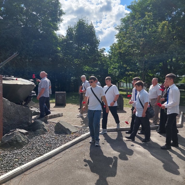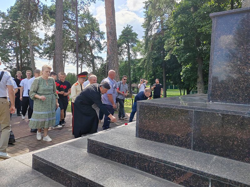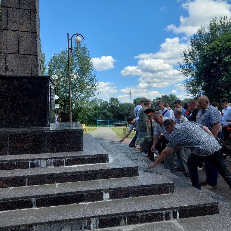 Встреча завершилась минутой молчания и возложением цветов у памятника погибшим мирным жителям и к мемориалу пятерым рогачёвским воинам-интернационалистам.