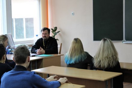 Зачем Бог наделил людей свободной волей? Как правильно распорядиться своей свободой? О таких важных вопросах иерей Игорь Ковальчук, настоятель прихода храма Успения Пресвятой Богородицы д. Городец, 23 ноября беседовал с учащимися 9 "Б" класса средней школы №4 г. Рогачёва. Многие из этих ребят летом покинут стены школы и окунутся в студенческую жизнь, которая предлагает немало соблазнов. Вырвавшись из-под родительской опеки, вчерашние школьники часто не могут правильно распорядиться своей свободой, не чувствуют её границ. Чтобы не пойти по неправильному пути, отец Игорь посоветовал ребятам придерживаться заповедей и, делая выбор, подумать, как было бы угодно Богу. И тогда, уповая на Его помощь,уверенно идти к поставленной цели.